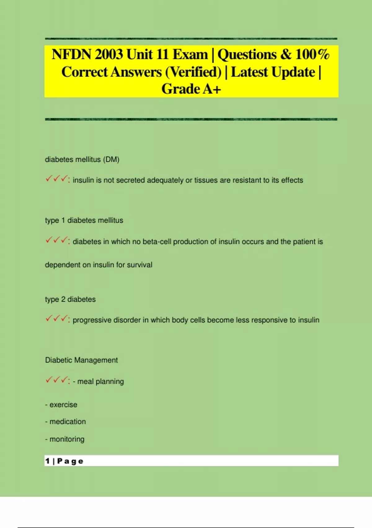 NFDN 2003 Unit 11 Exam | Questions & 100% Correct Answers (Verified) | Latest Update | Grade A+