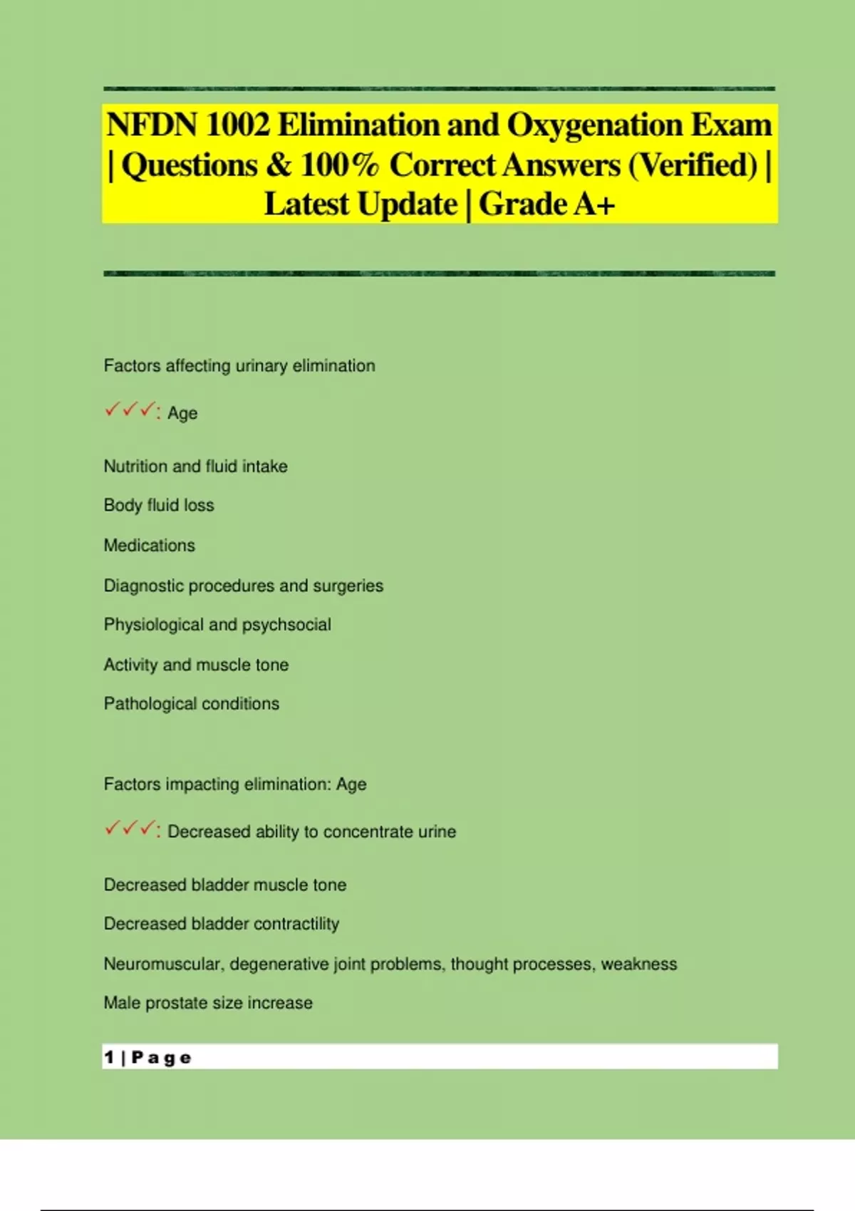 NFDN 1002 Elimination and Oxygenation Exam | Questions & 100% Correct Answers (Verified) | Latest Update | Grade A+