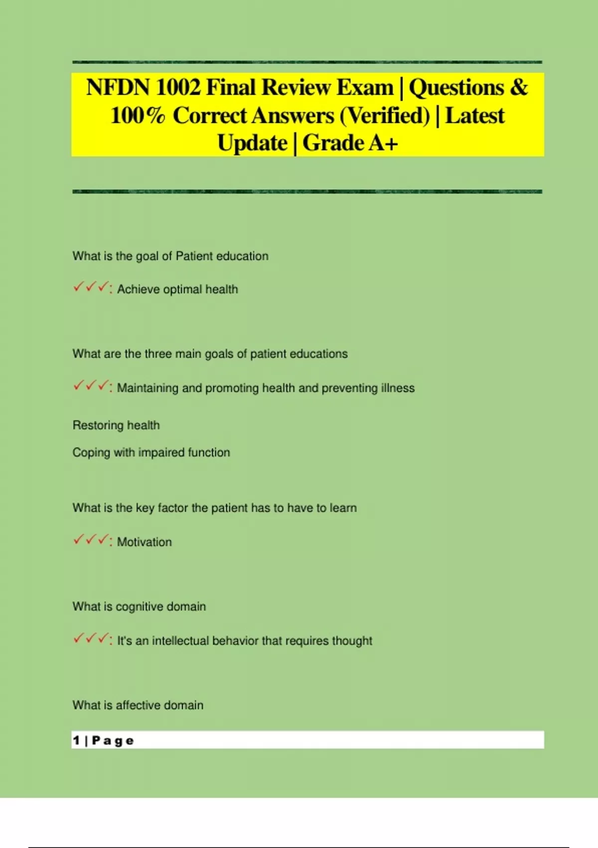 NFDN 1002 Final Review Exam | Questions & 100% Correct Answers (Verified) | Latest Update | Grade A+
