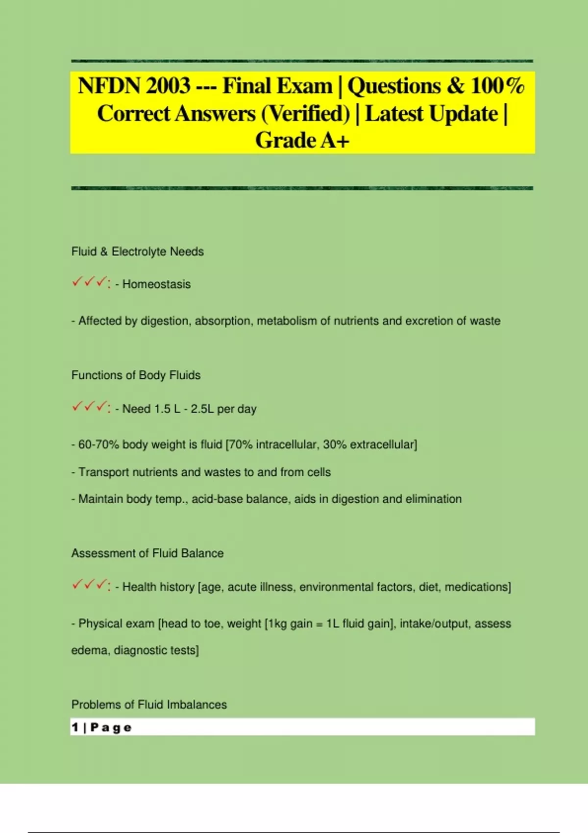 NFDN 2003 --- Final Exam | Questions & 100% Correct Answers (Verified) | Latest Update | Grade A+
