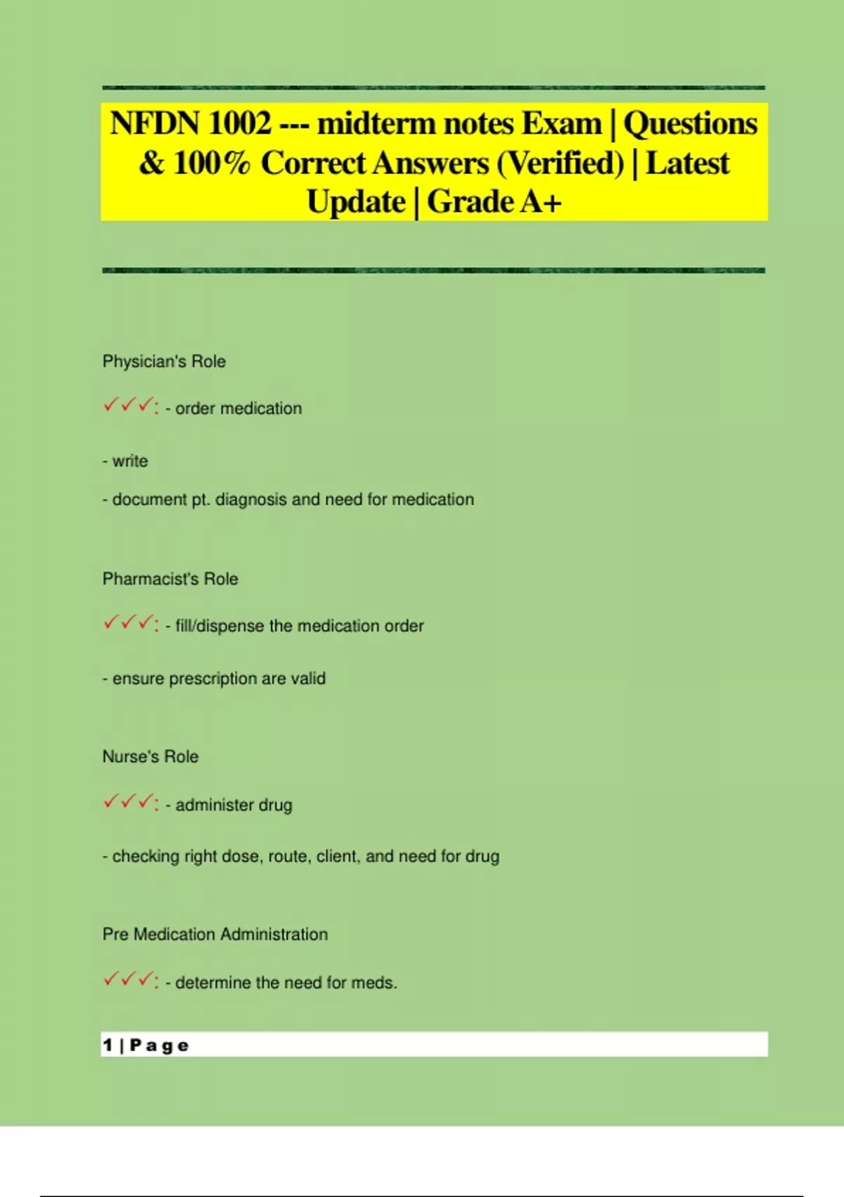 NFDN 1002 --- midterm notes Exam | Questions & 100% Correct Answers (Verified) | Latest Update | Grade A+