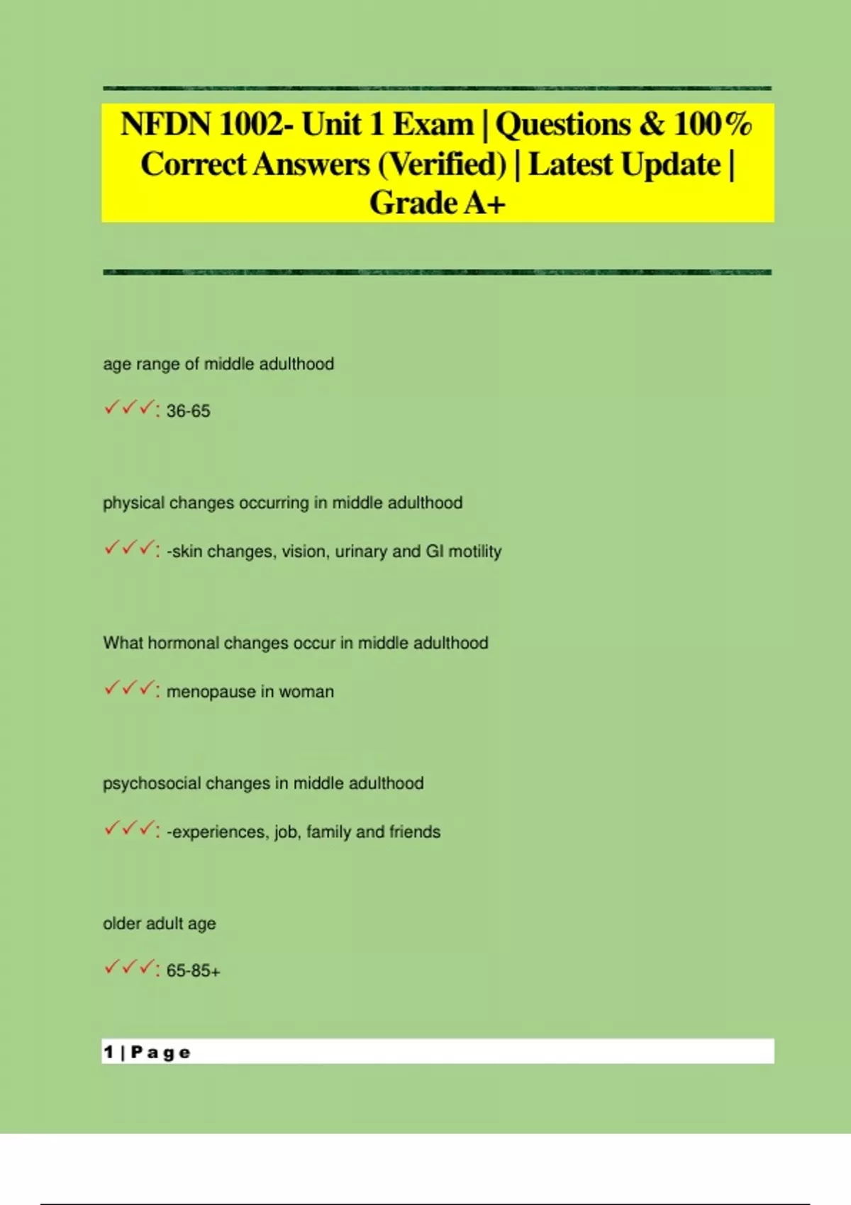 NFDN 1002- Unit 1 Exam | Questions & 100% Correct Answers (Verified) | Latest Update | Grade A+