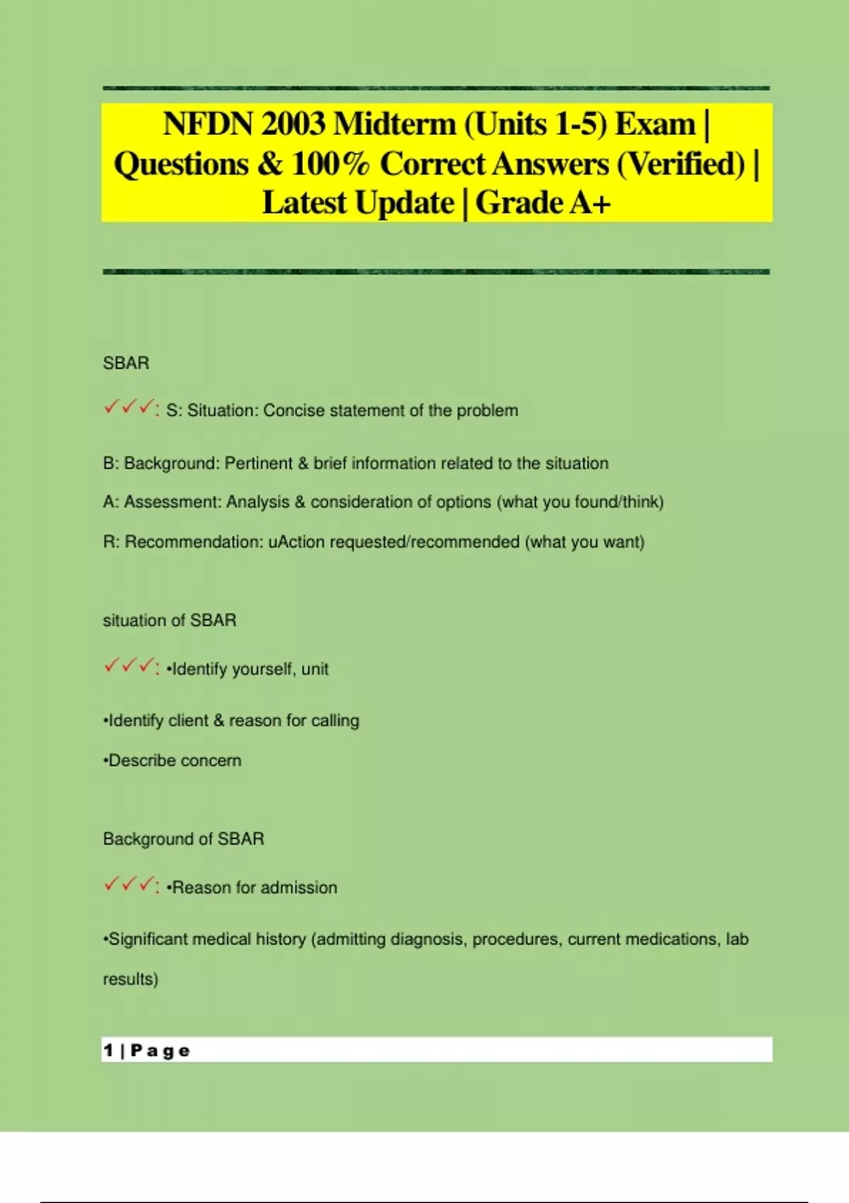 NFDN 2003 Midterm (Units 1-5) Exam | Questions & 100% Correct Answers (Verified) | Latest Update | Grade A+