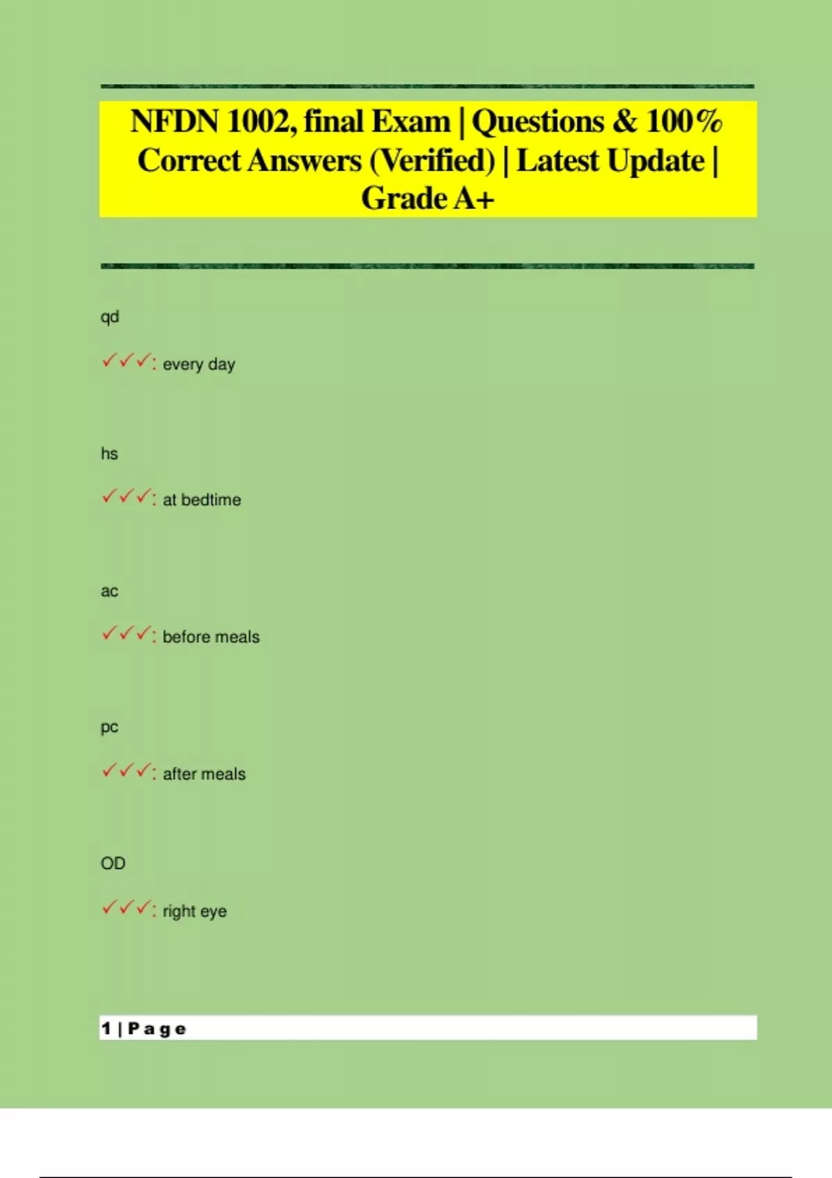 NFDN 1002, final Exam | Questions & 100% Correct Answers (Verified) | Latest Update | Grade A+