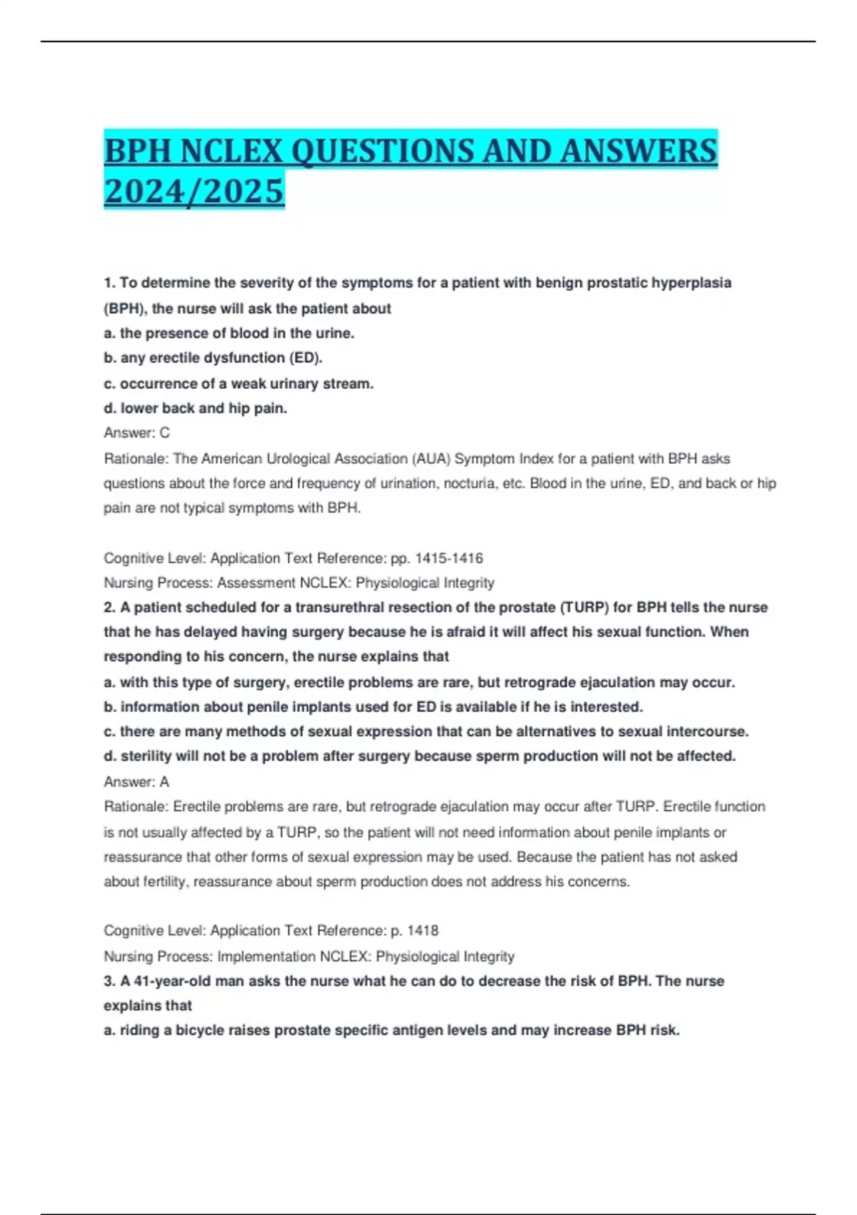 BPH NCLEX QUESTIONS AND ANSWERS 2024/2025