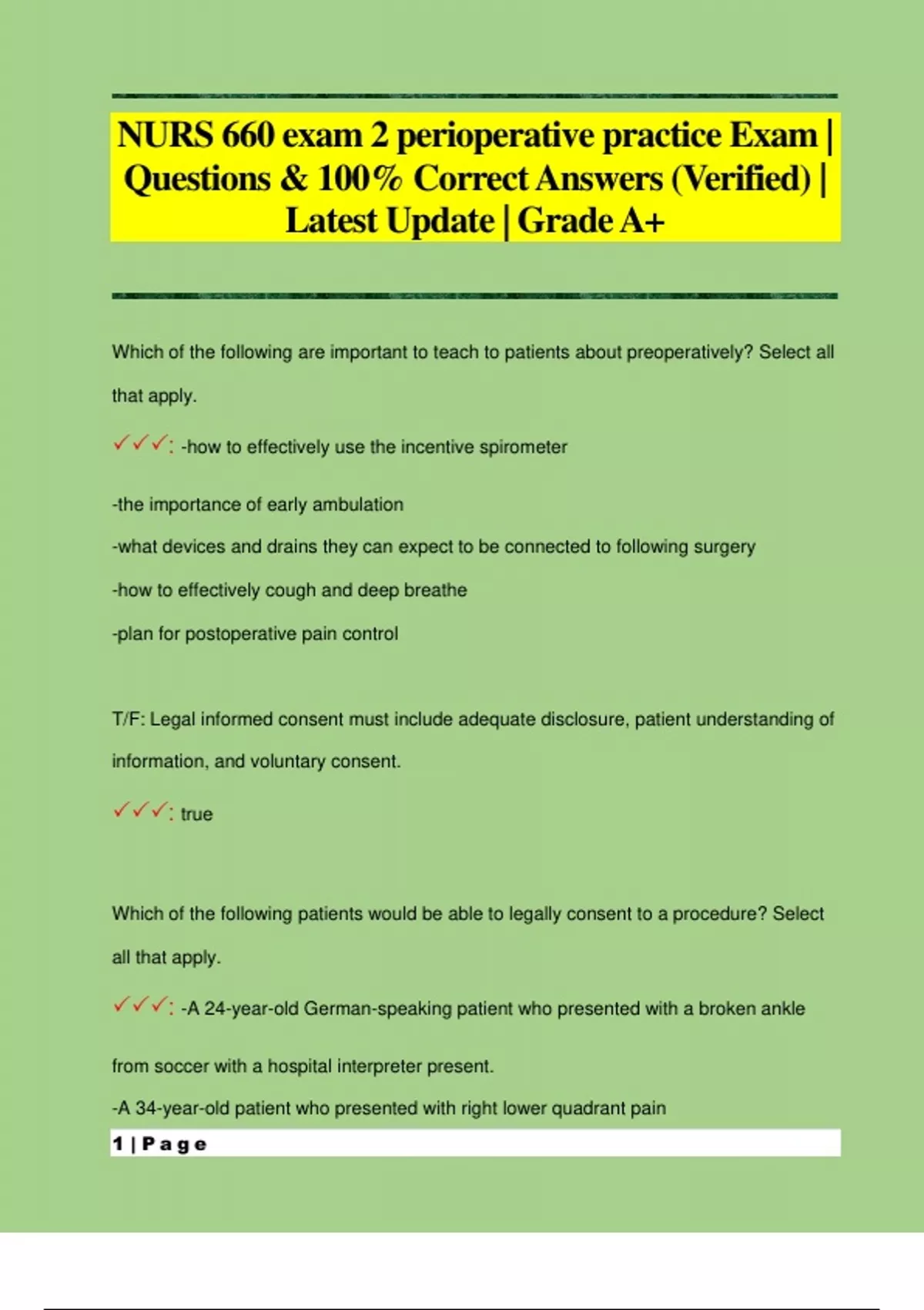 NURS 660 exam 2 perioperative practice Exam | Questions & 100% Correct Answers (Verified) | Latest Update | Grade A+