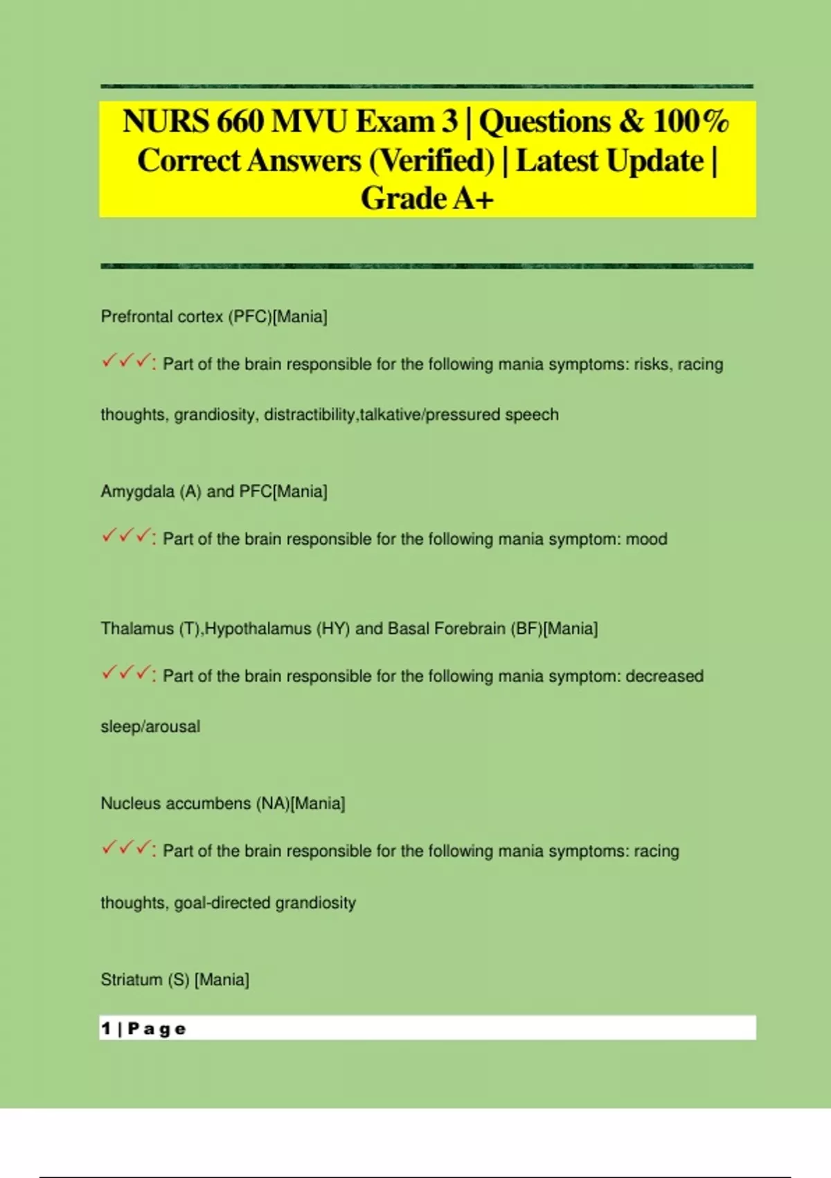 NURS 660 MVU Exam 3 | Questions & 100% Correct Answers (Verified) | Latest Update | Grade A+