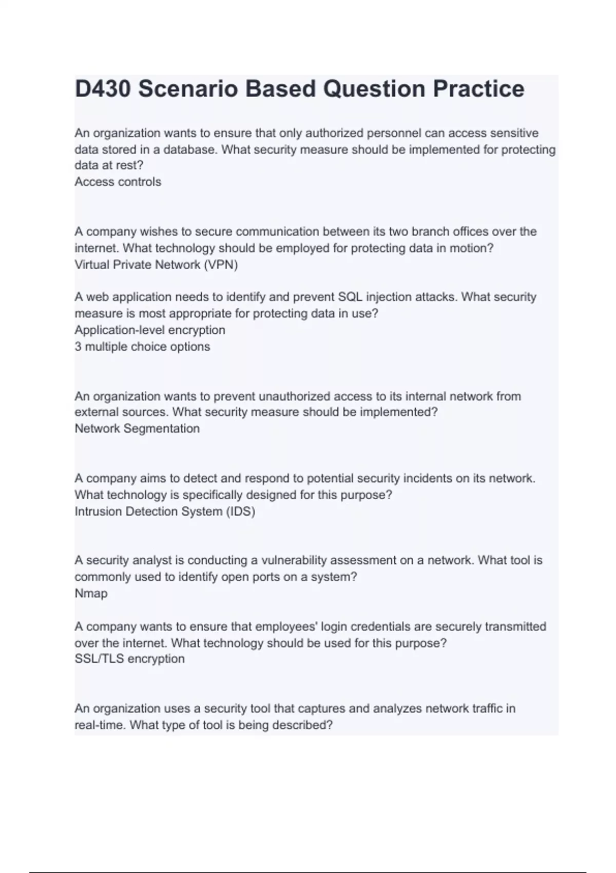 D430 Scenario Based Question Practice with complete solution