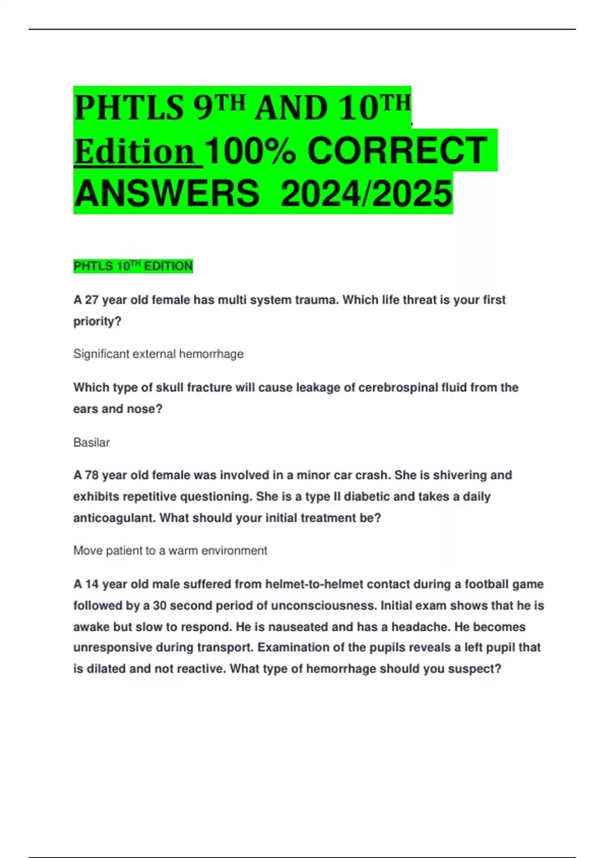 PHTLS 9TH AND 10TH Edition 100% CORRECT ANSWERS 2024/2025