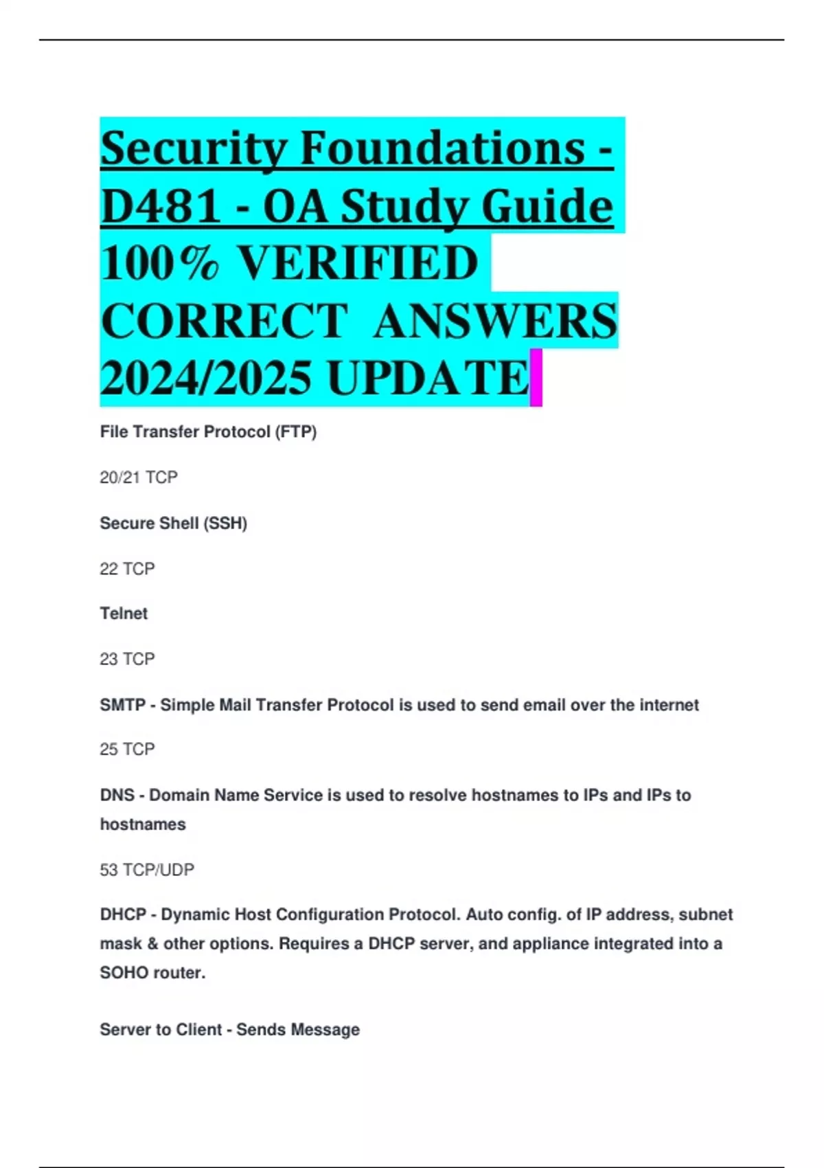 WGU C172 Network and Security - Foundations; PA and OA 100% VERIFIED QUESTIONS