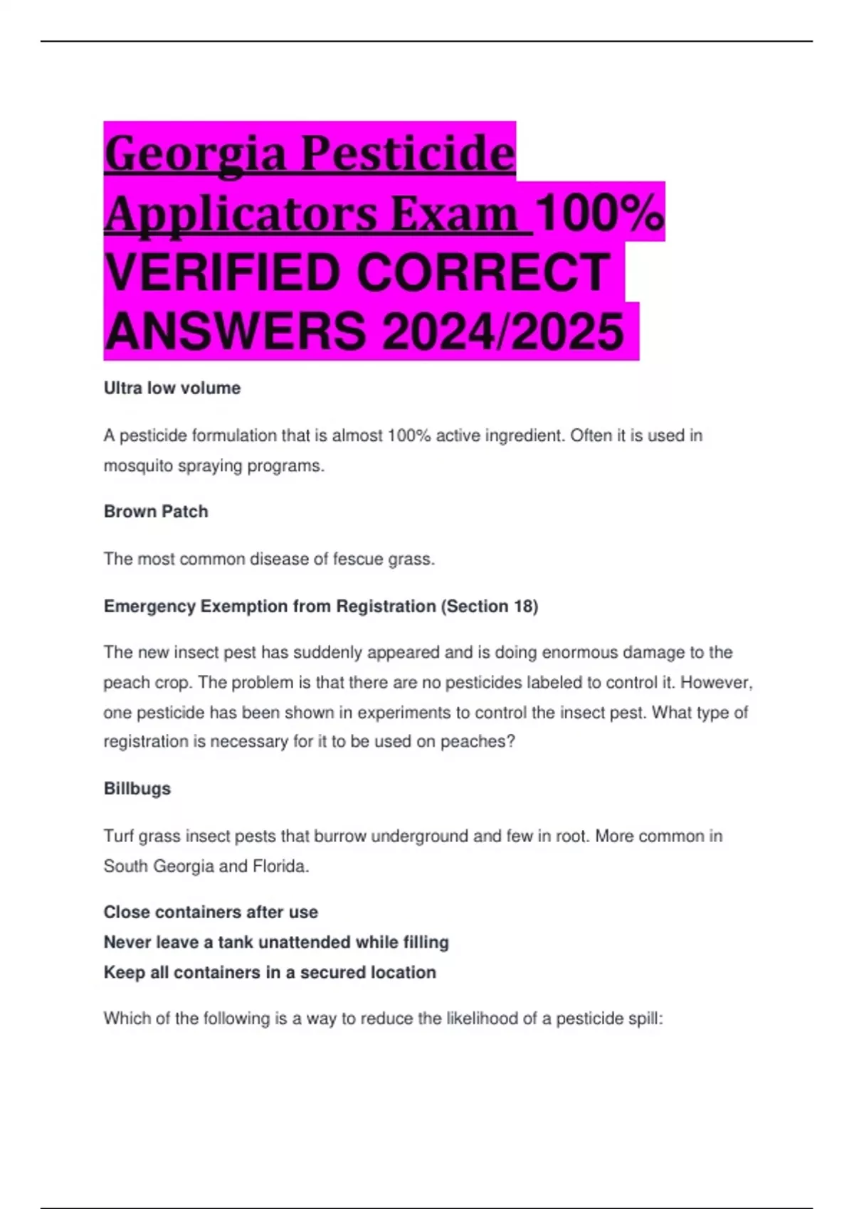 Georgia Pesticide Applicators Exam 100% VERIFIED CORRECT ANSWERS 2024/2025