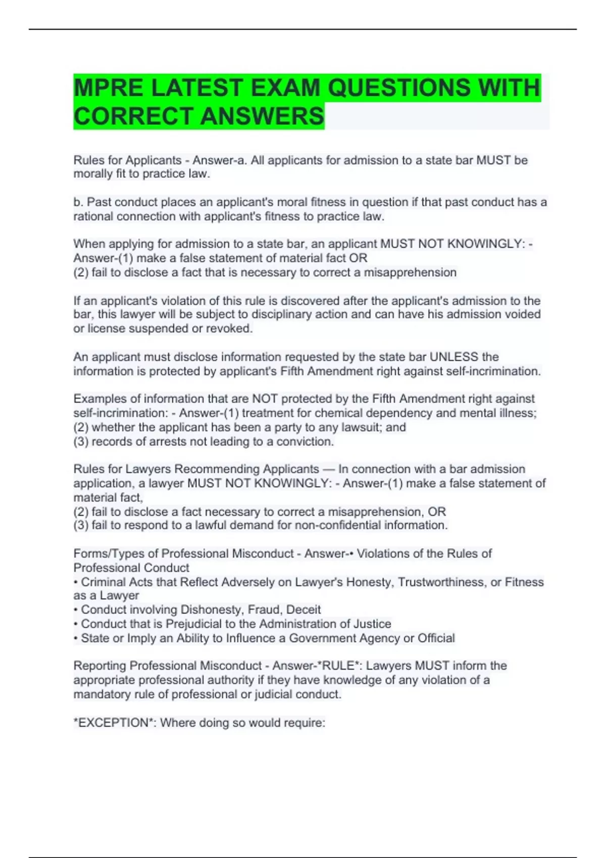 MPRE LATEST EXAM QUESTIONS WITH CORRECT ANSWERS