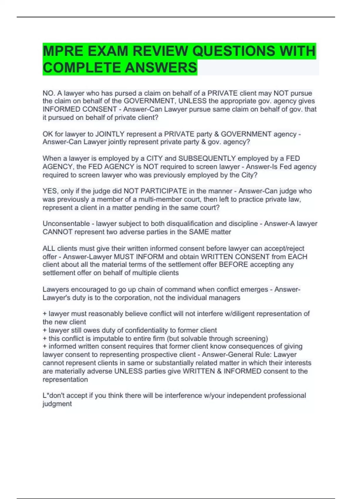 MPRE EXAM REVIEW QUESTIONS WITH COMPLETE ANSWERS