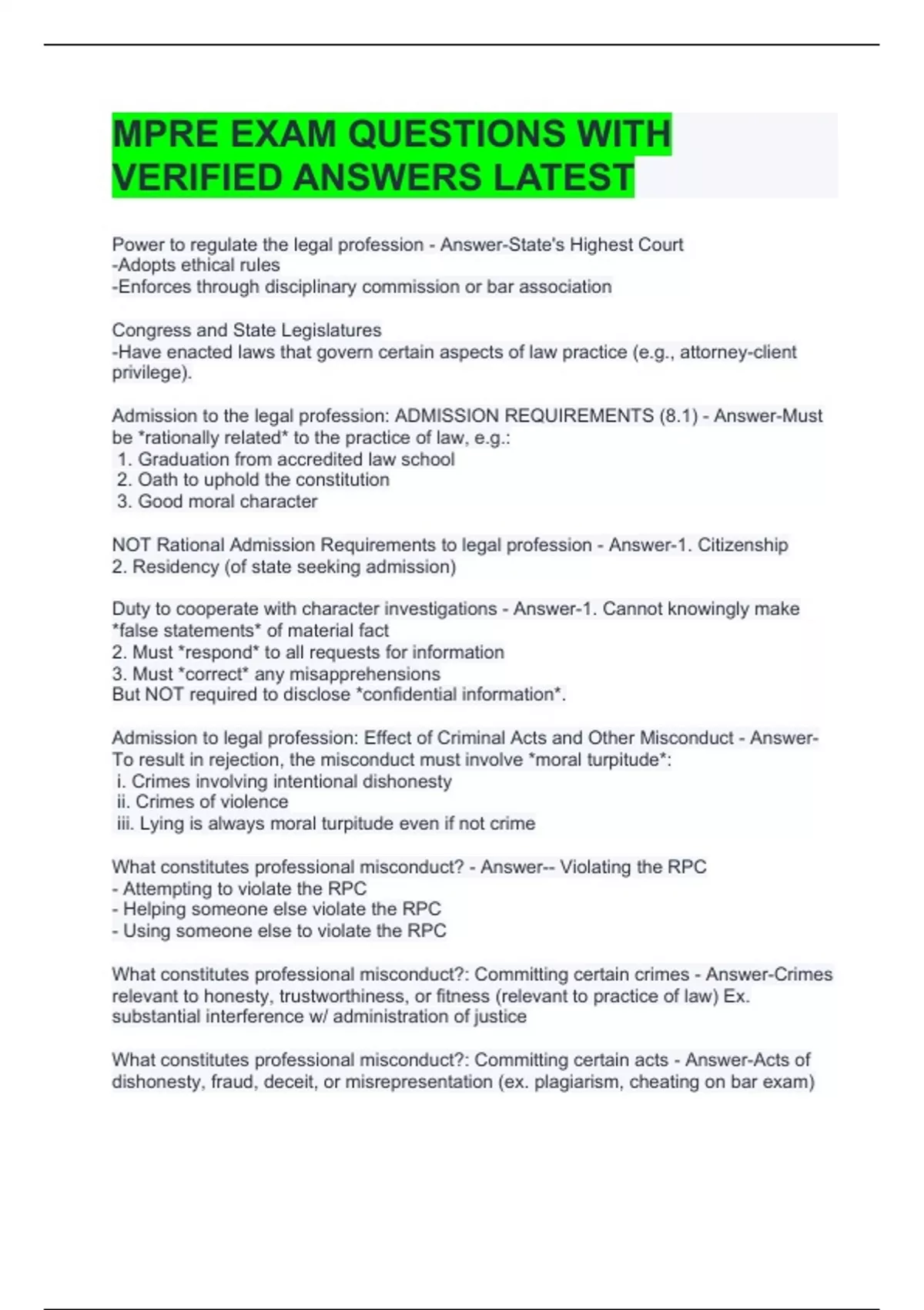 MPRE EXAM QUESTIONS WITH VERIFIED ANSWERS LATEST