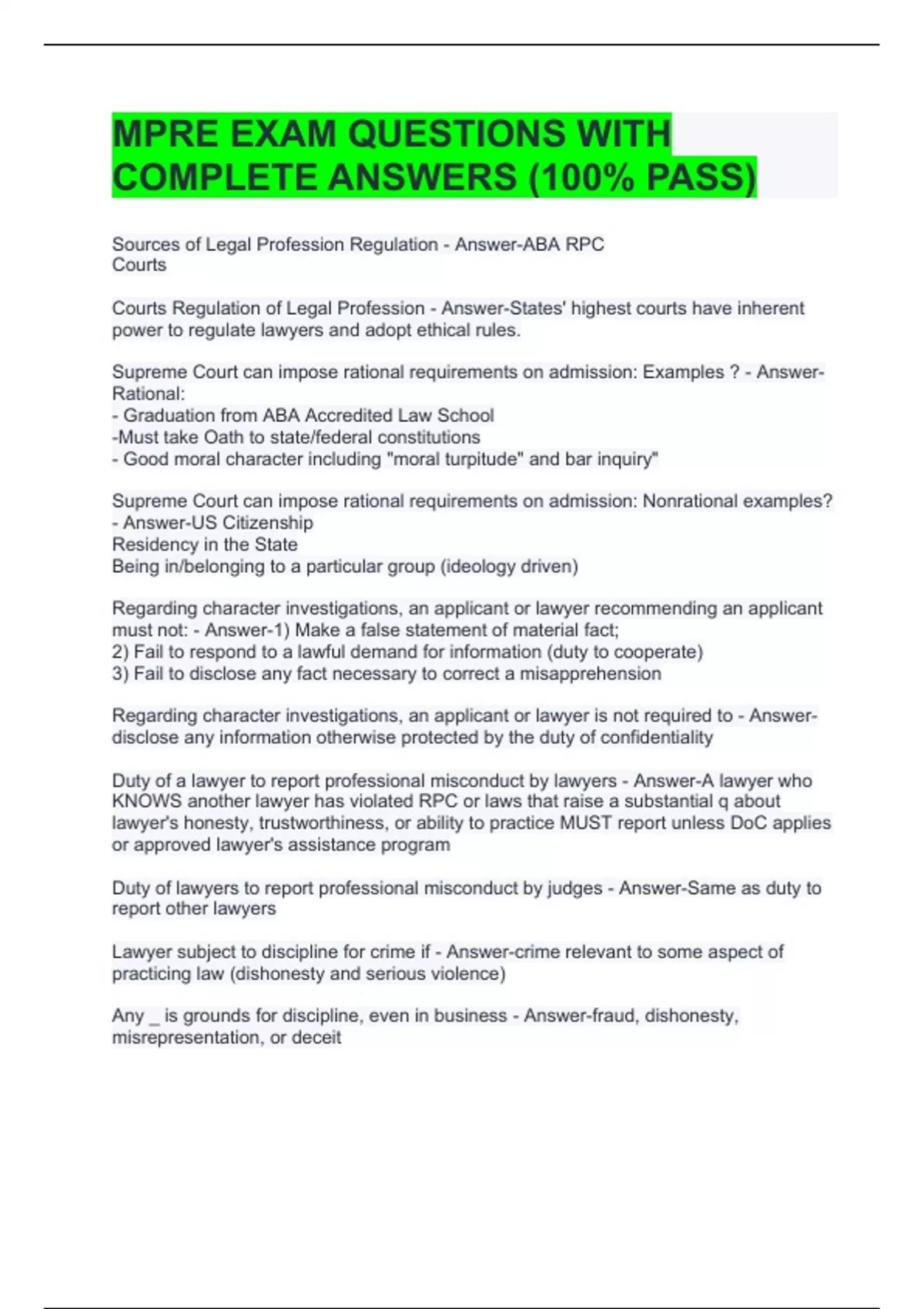 mpre exam questions with complete answers 100 pa