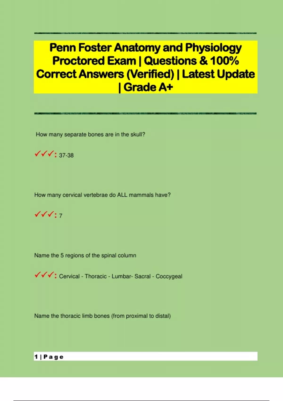 Penn Foster Anatomy and Physiology Proctored Exam | Questions & 100% Correct Answers (Verified) | Latest Update | Grade A+