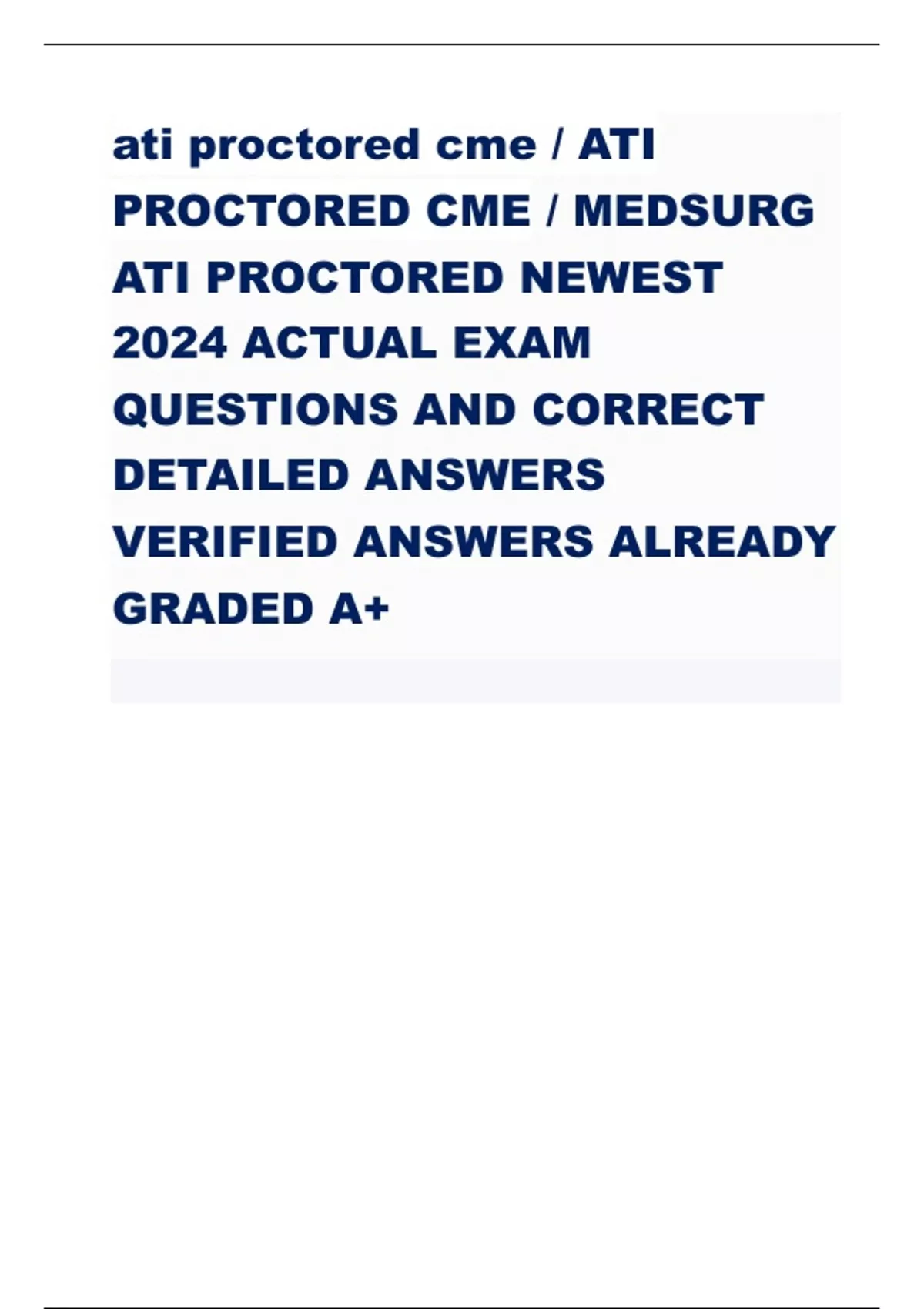 ati proctored cme/ ATI proctored cme/ MEDSURG ATI PROCTORED NEWEST 2024 ACTUAL EXAM QUESTIONS AND CORRECT DETAILED ANSWERS VERIFIED ANSWERS ALREADY GRADED A+