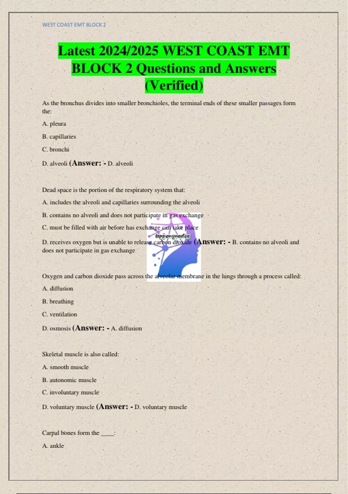 Latest 2024/2025 WEST COAST EMT BLOCK 2 Questions and Answers (Verified)