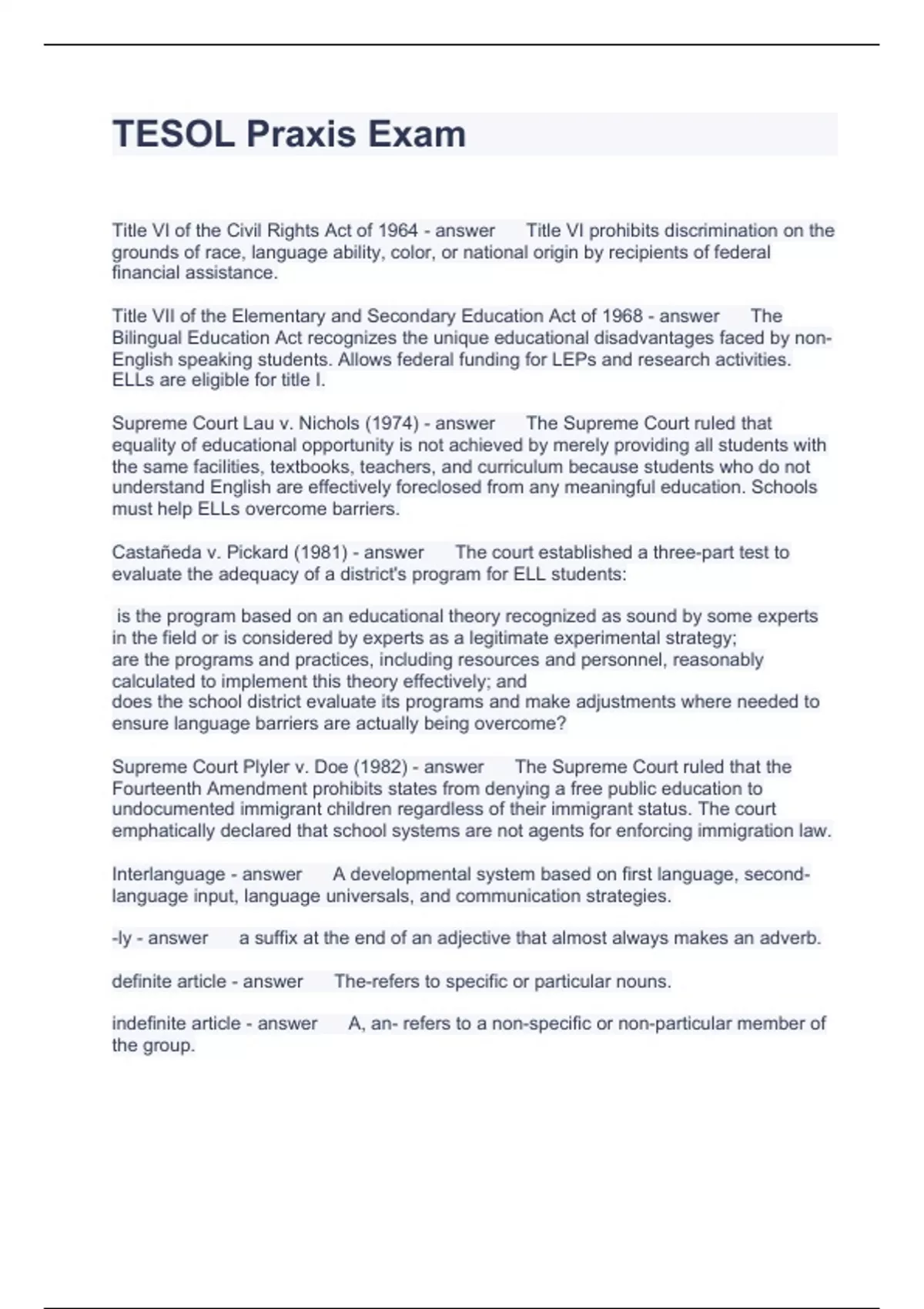 Exam of 11 pages for the course TESOL at TESOL (TESOL Praxis Exam)