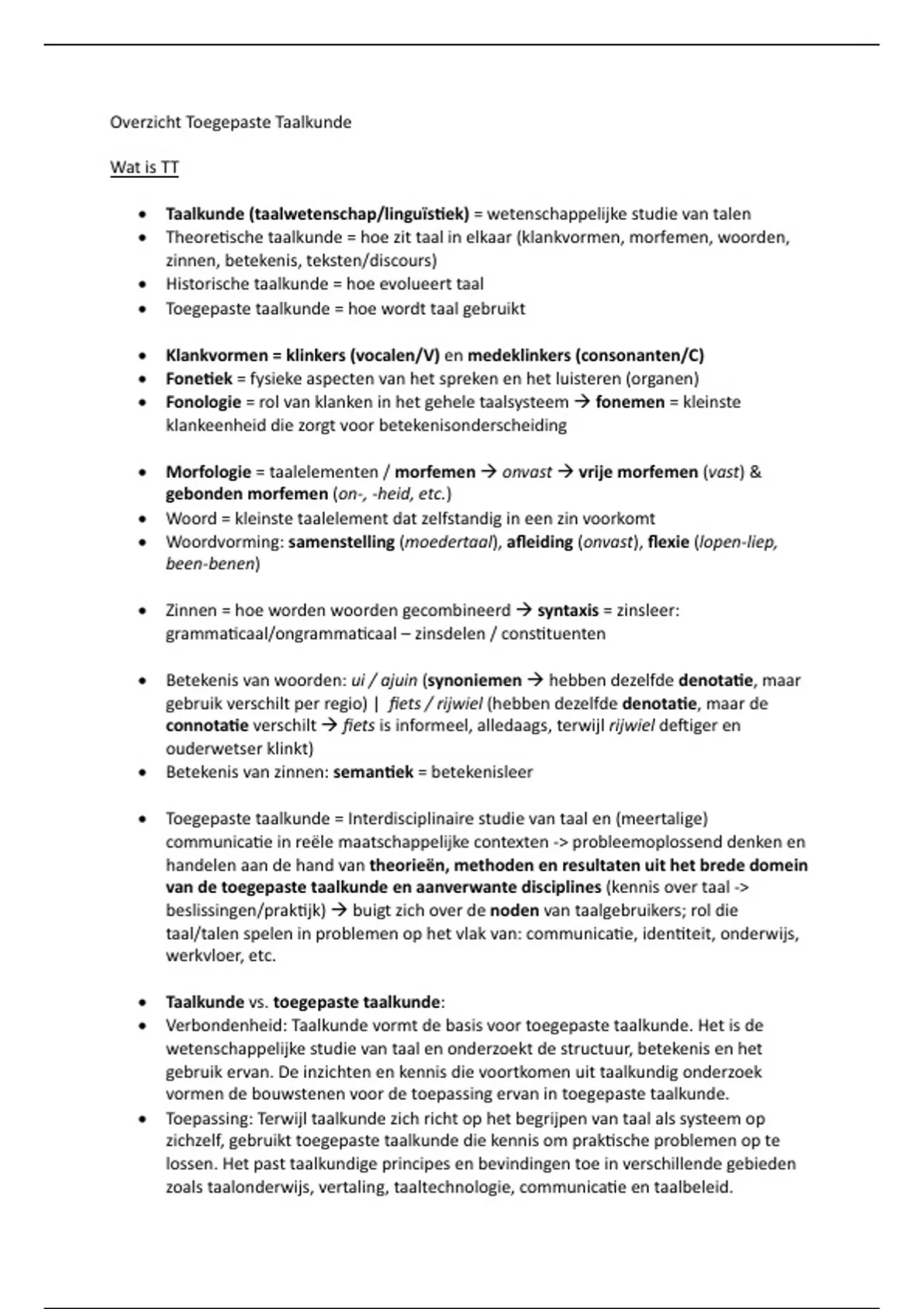 • Theore:sche taalkunde = hoe zit taal in elkaar (klankvormen, morfemen, woorden,