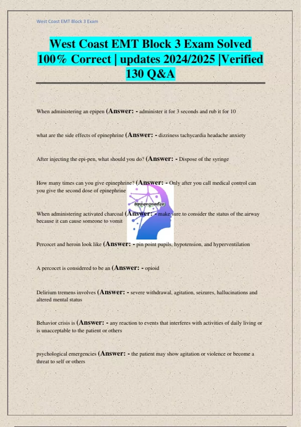 West Coast EMT Block 3 Exam Solved 100% Correct | updates 2024/2025 |Verified 130 Q&A