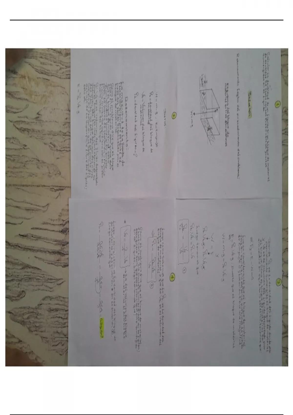 Este documento hace referencia al calculo de la densidad de un líquido si un bloque de material de densidad 0.6 flota con las tres cuartas partes sumergidas en el líquido. NOTA : El razonamiento y el procedimiento lógico del problema está enumerado de la hoja número 1 a la hoja numero 4 , el cuál es el orden correcto del problema ; es decir inicia en la hoja 1 c, y finaliza en la hoja , numero 4. Número ISBN del libro : Libro : FISICA FUNDAMENTAL 1 MICHEL VALERO Primera edición Página donde está propuesto el problema : 172