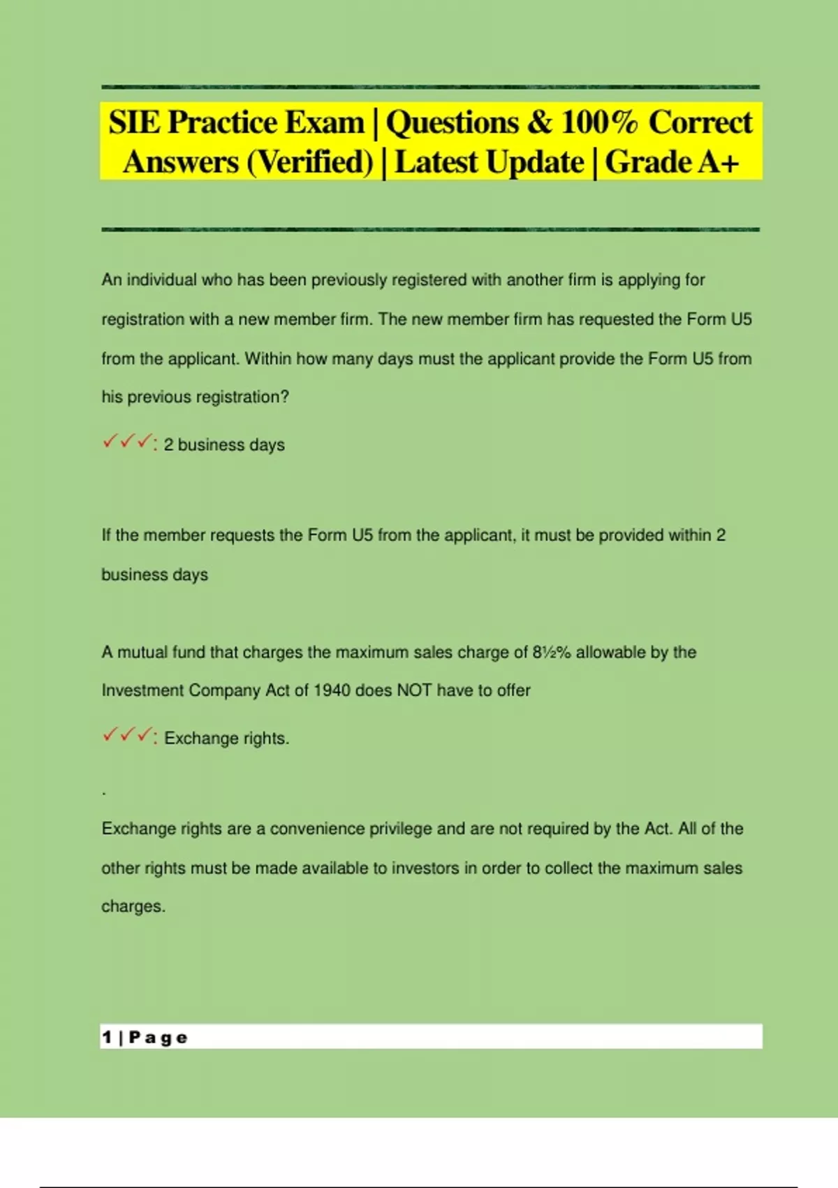 SIE Practice Exam | Questions & 100% Correct Answers (Verified) | Latest Update | Grade A+