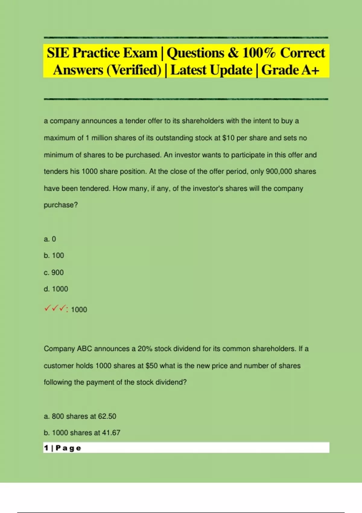 SIE Practice Exam | Questions & 100% Correct Answers (Verified) | Latest Update | Grade A+