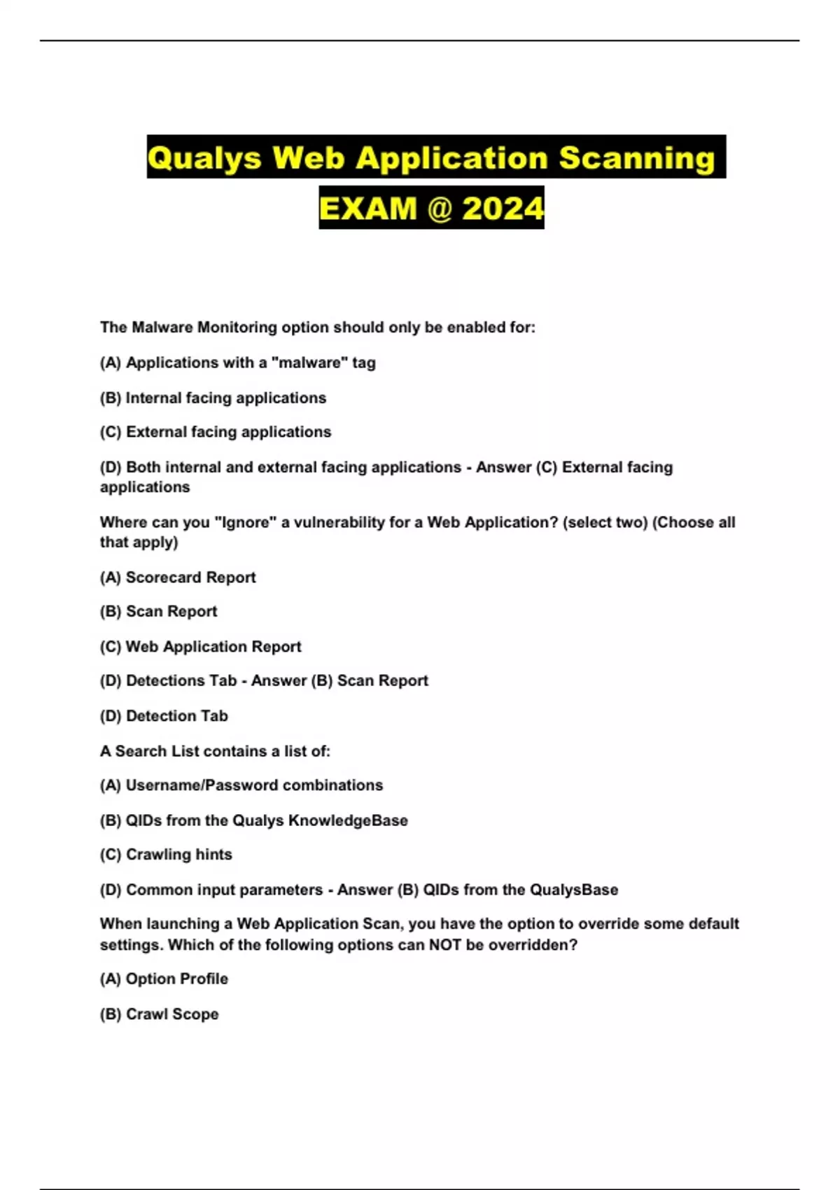 Qualys Web Application Scanning EXAM @ 2024...