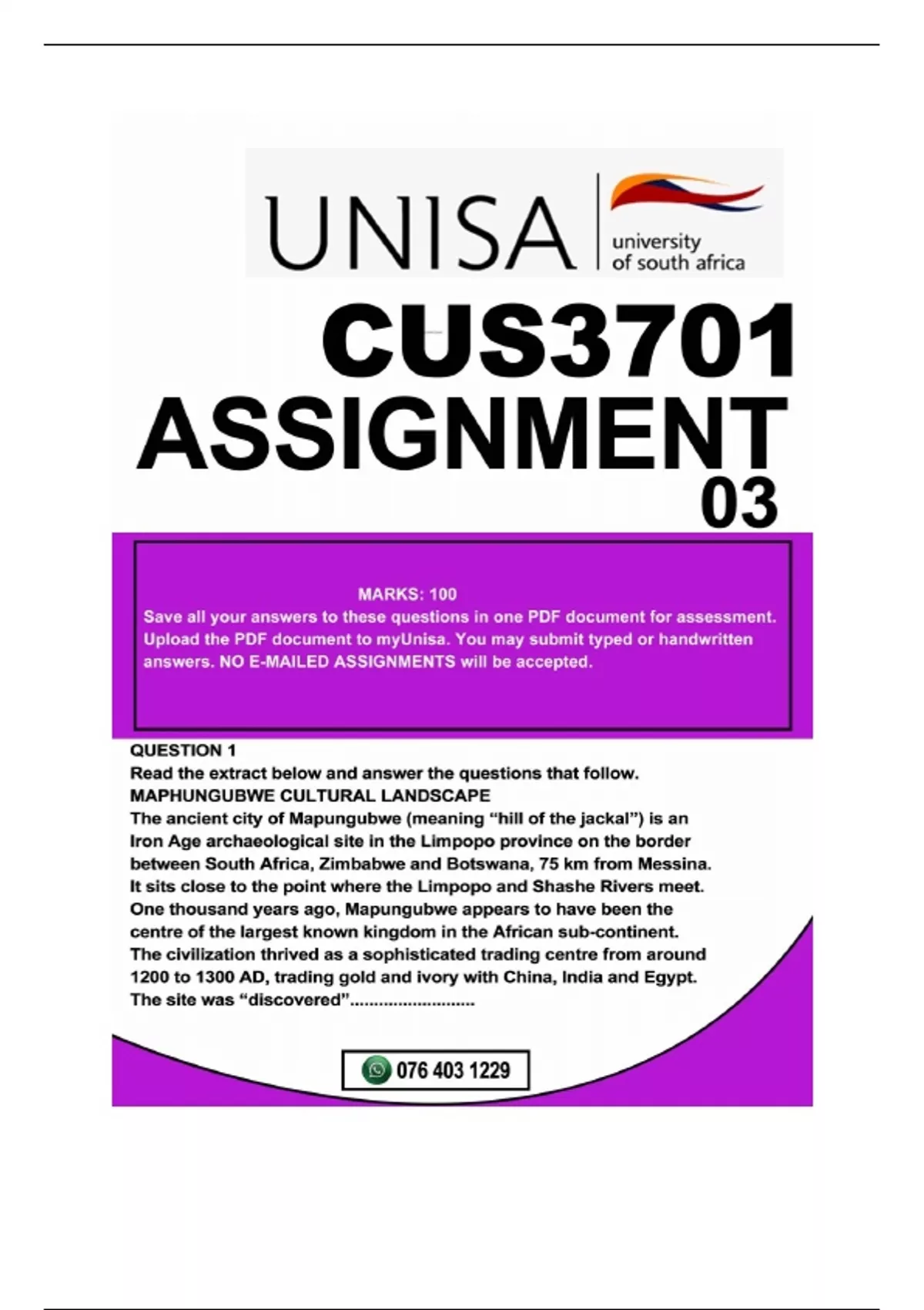 CUS3701 ASSIGNMENT 03 DUE 2024