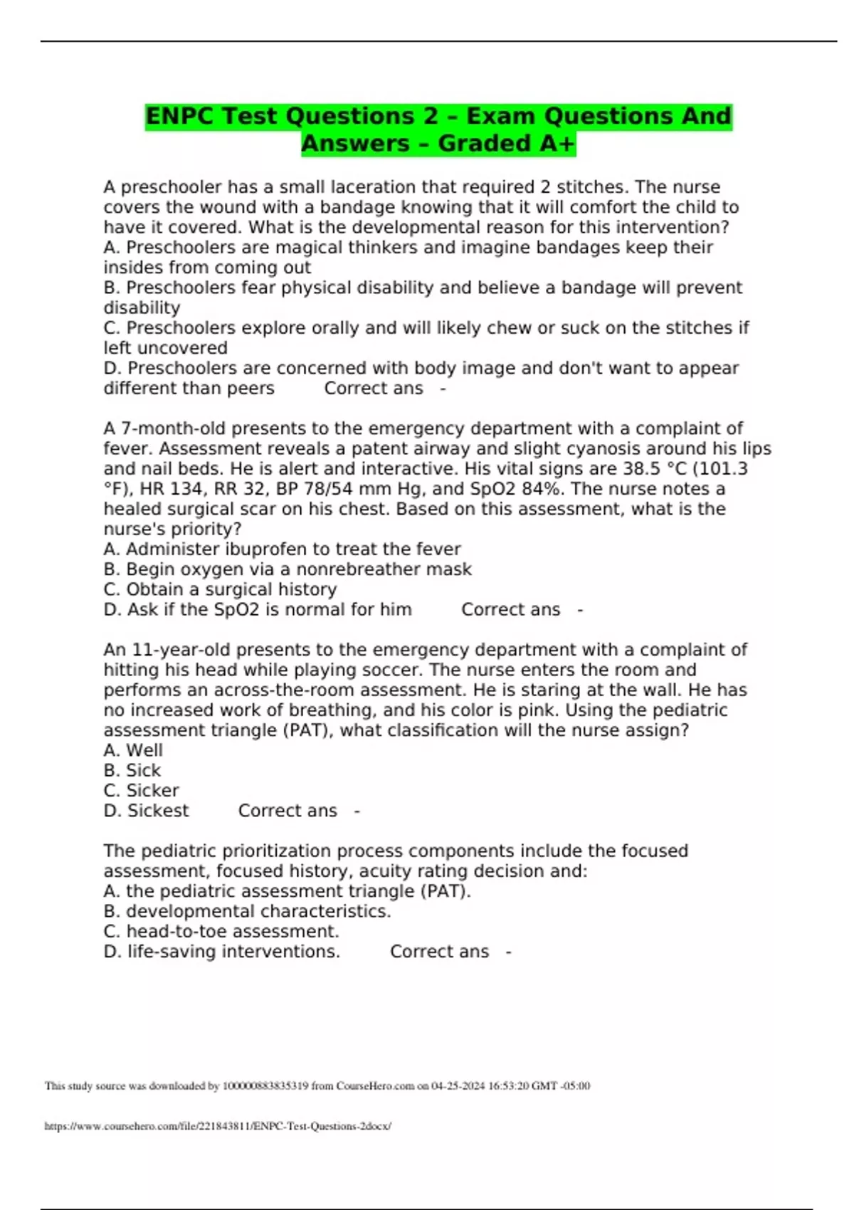 ENPC Test Questions 2 – Exam Questions And Answers – Graded A+
