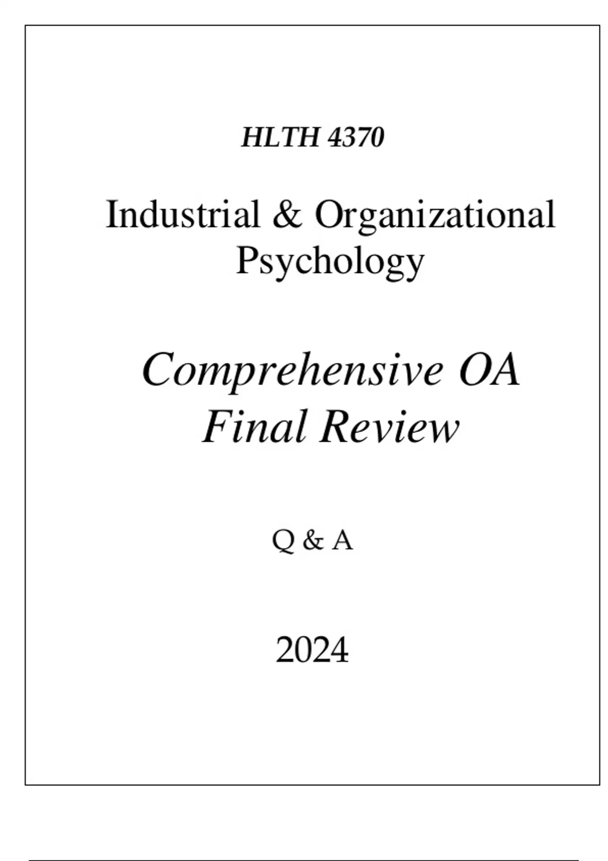 (WGU D576) HLTH 4370 INDUSTRIAL & ORGANIZATIONAL PSYCHOLOGY COMPREHENSIVE(WGU D576) HLTH 4370 INDUSTRIAL & ORGANIZATIONAL PSYCHOLOGY COMPREHENSIVE(WGU D576) HLTH 4370 INDUSTRIAL & ORGANIZATIONAL PSYCHOLOGY COMPREHENSIVE