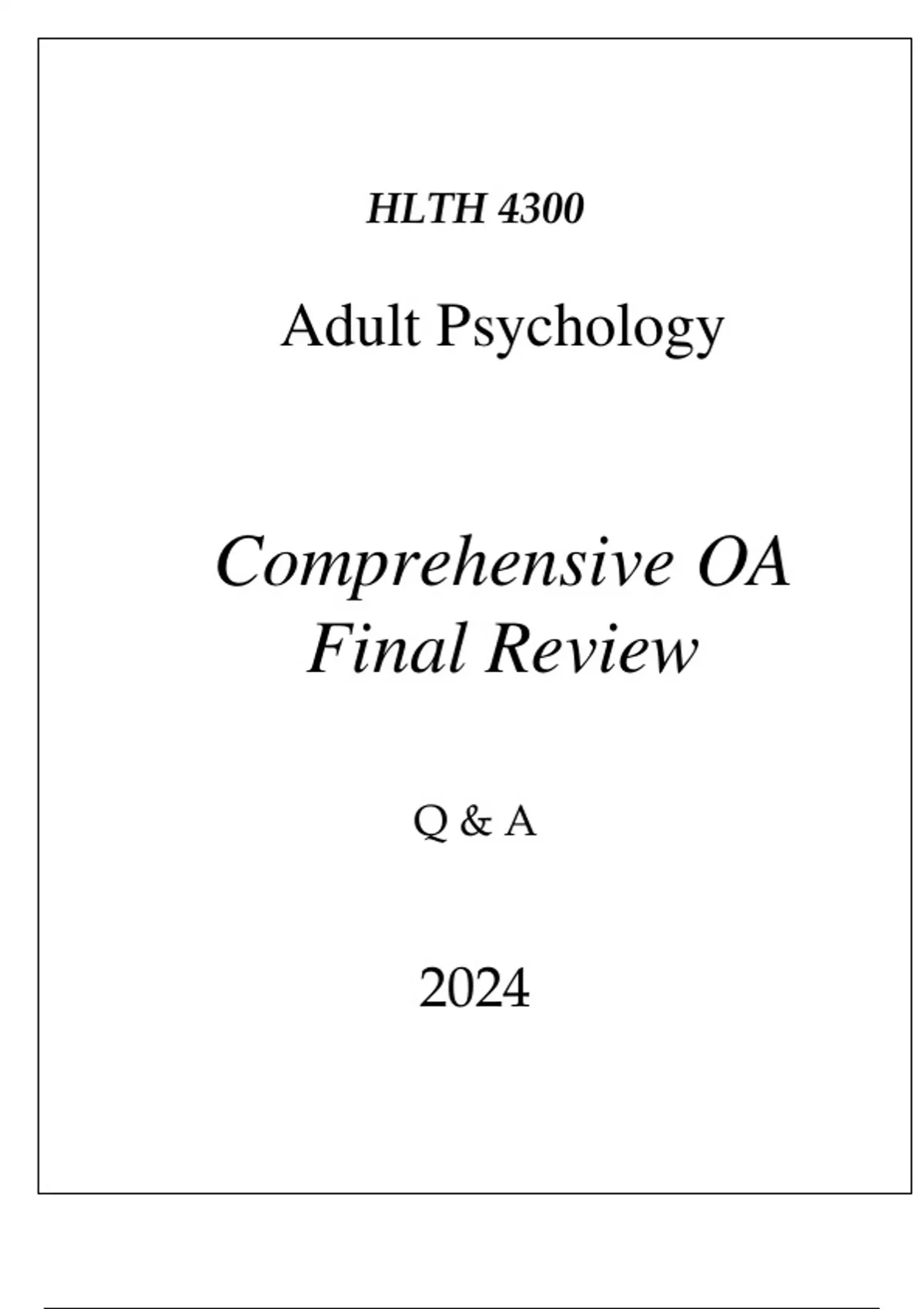 (WGU D569) HLTH 4300 ADULT PSYCHOLOGY COMPREHENSIVE OA FINAL REVIEW 2024(WGU D569) HLTH 4300 ADULT PSYCHOLOGY COMPREHENSIVE OA FINAL REVIEW 2024(WGU D569) HLTH 4300 ADULT PSYCHOLOGY COMPREHENSIVE OA FINAL REVIEW 2024