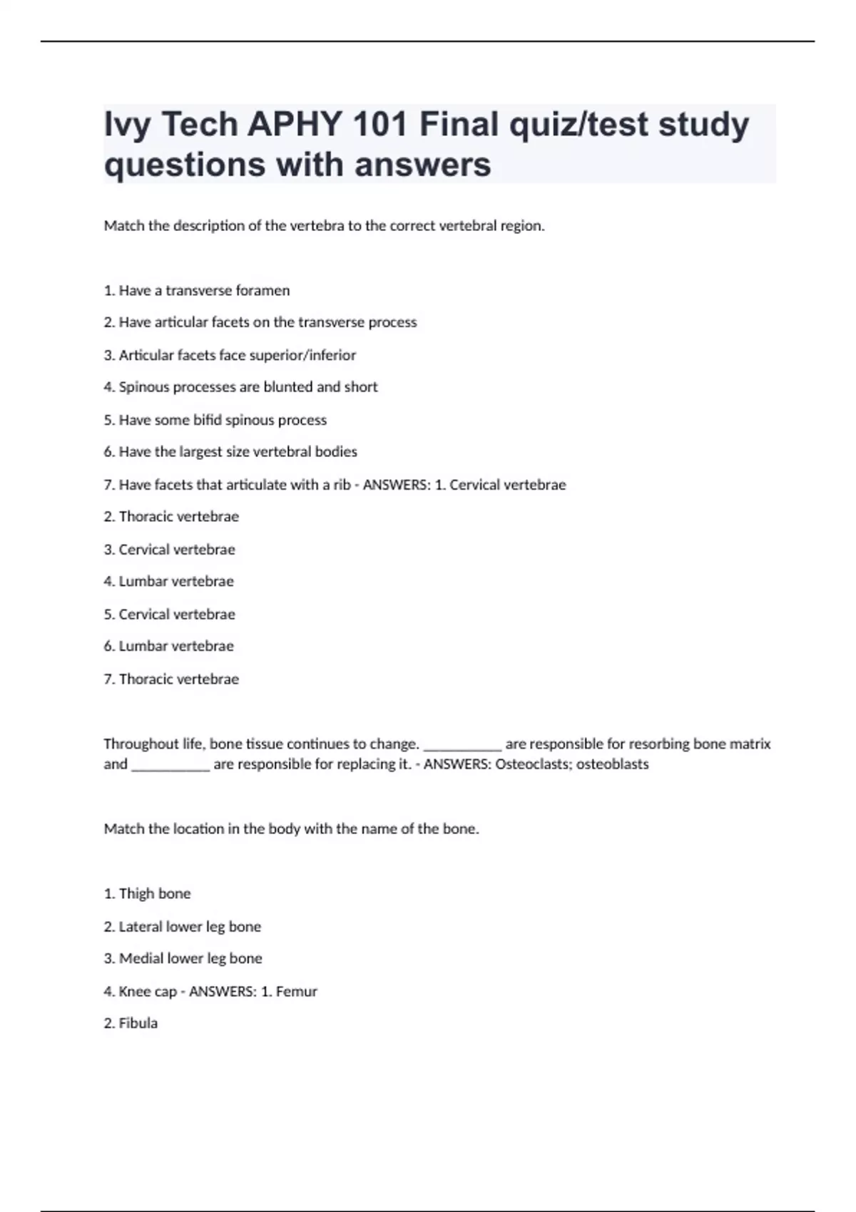 Ivy Tech APHY 101 Final quiz,test study questions with answers