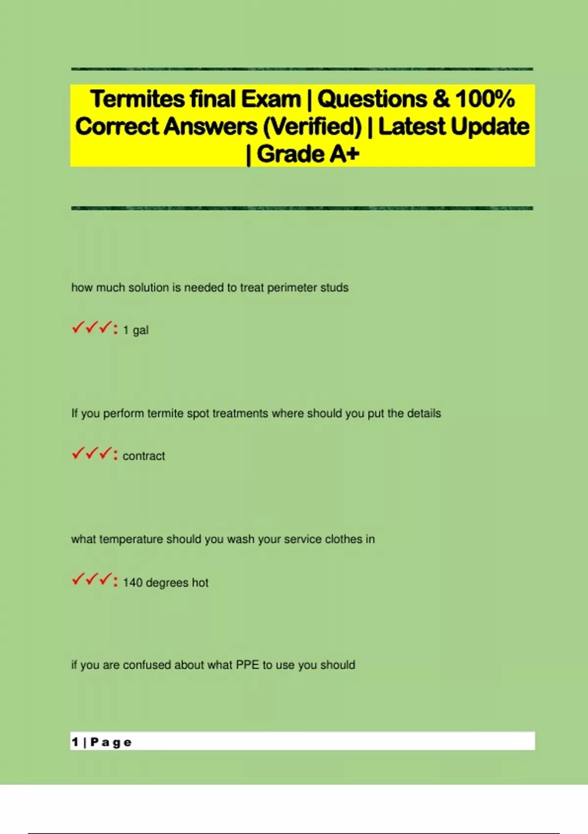 Termites final Exam | Questions & 100% Correct Answers (Verified) | Latest Update | Grade A+