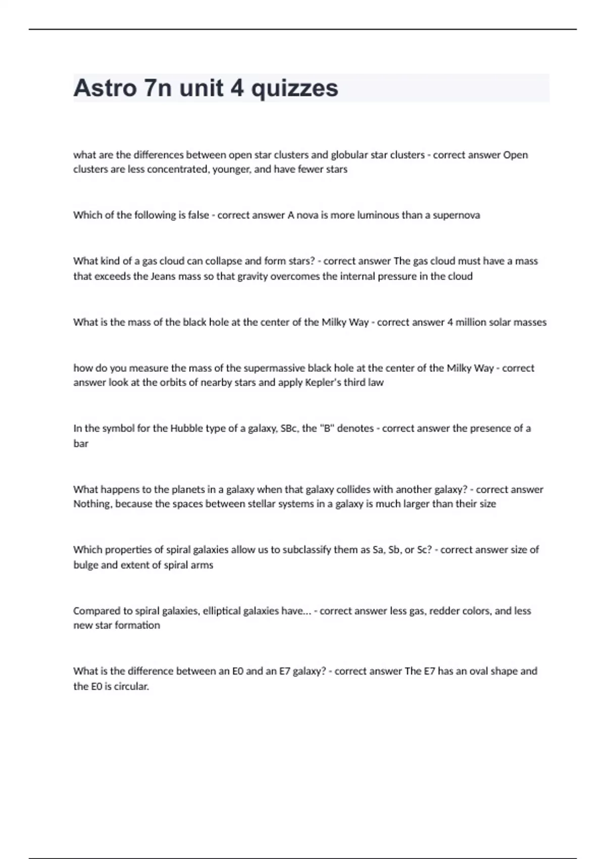 What is the difference between an E0 and an E7 galaxy? - correct answer The E7 has an oval shape and the E0 is circular.