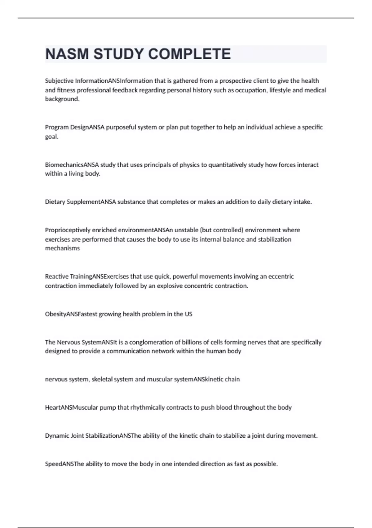 NASM STUDY COMPLETE EXAM QUESTIONS AND CORRECT ANSWERS 2024 (RATED 100%)