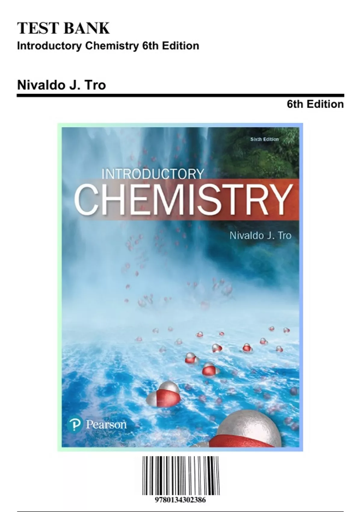 Test Bank for Introductory Chemistry, 6th Edition by Nivaldo J. Tro, 9780134564074, Covering Chapters 1-19 | Includes Rationales
