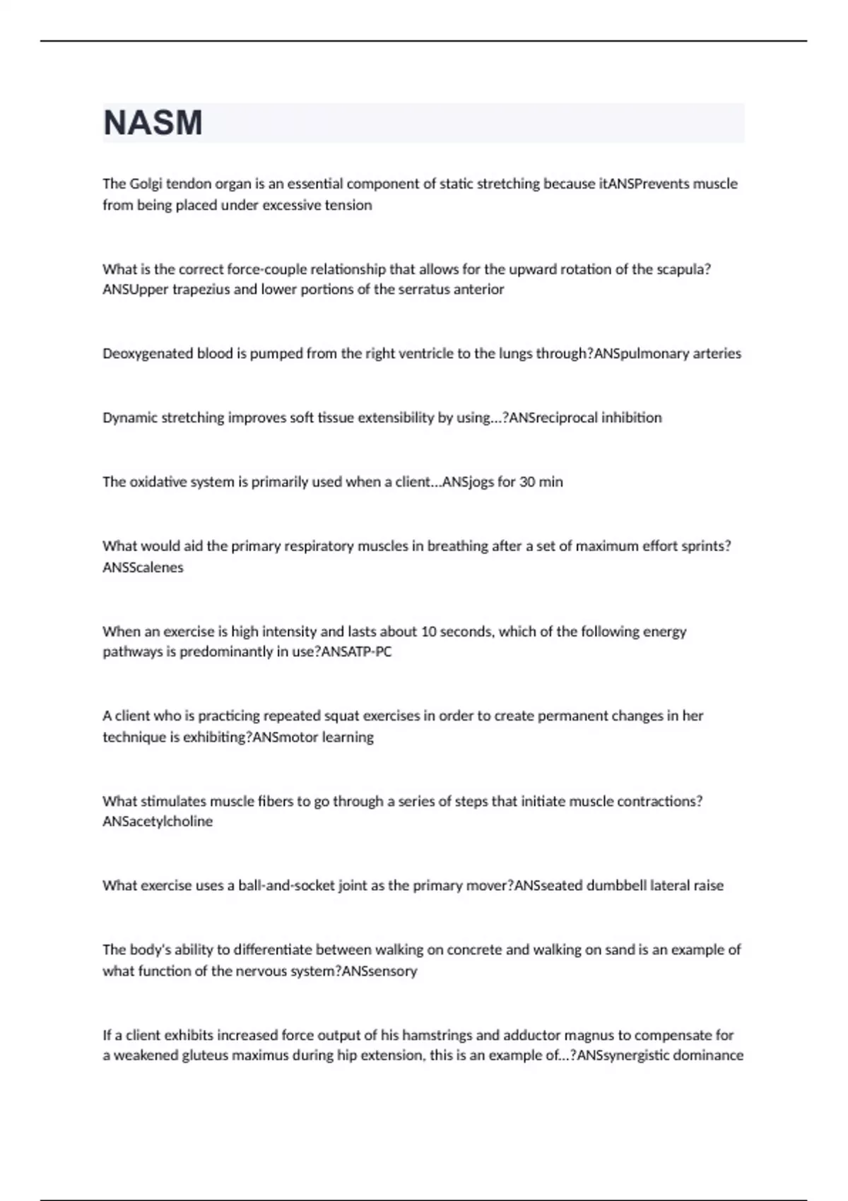 NASM EXAM STUDY QUESTIONS AND ANSWERS COMPLETE SOLUTIONS
