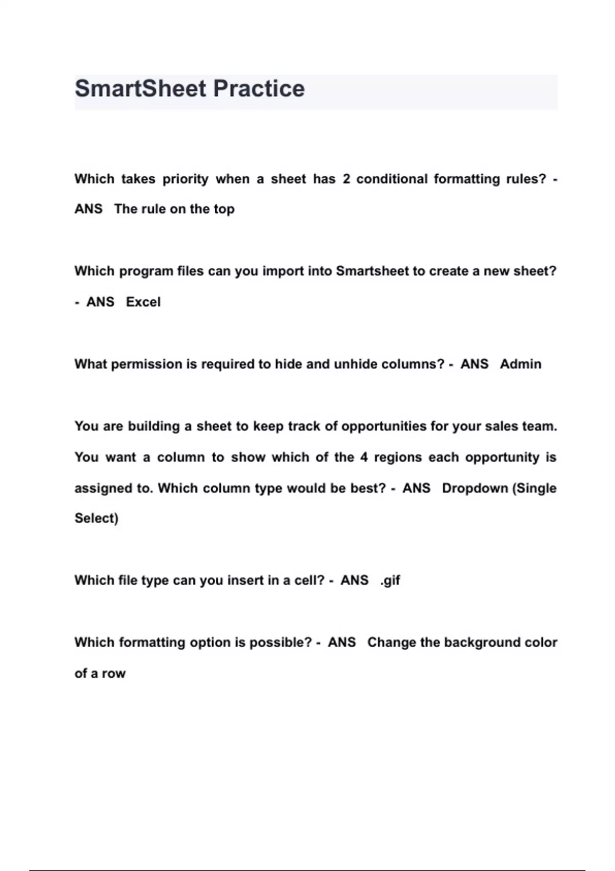 SmartSheet Practice QUESTIONS & ANSWERS 2024 ( A+ GRADED 100% VERIFIED)