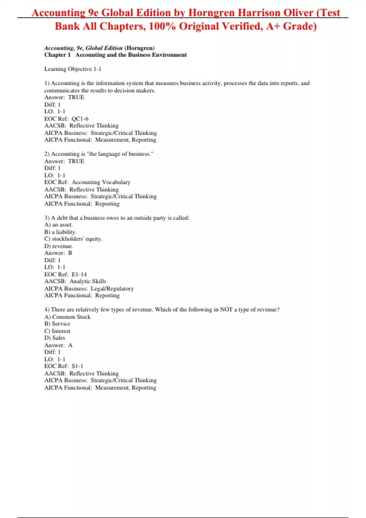 This Is Original 9th Edition of Test Bank From Original Author. All Other Files in the market are fake/old Edition. Other Sellers Have changed old Edition Number to new But Test Bank is old Edition. Test Bank for Accounting 9th Edition (Global Edition) By Horngren Harrison Oliver (All Chapters, 100% Original Verified, A+ Grade) Test Bank for Accounting 9e (Global Edition) By Horngren Harrison Oliver (All Chapters, 100% Original Verified, A+ Grade)