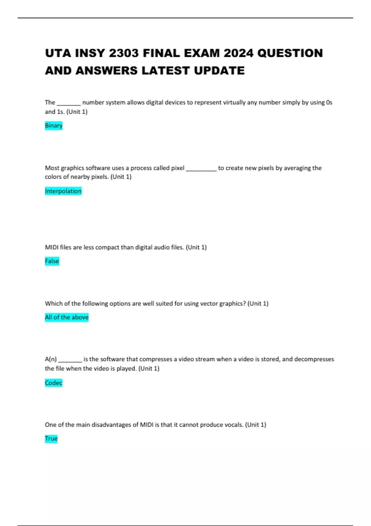 UTA INSY 2303 FINAL EXAM 2024 QUESTION AND ANSWERS LATEST UPDATE