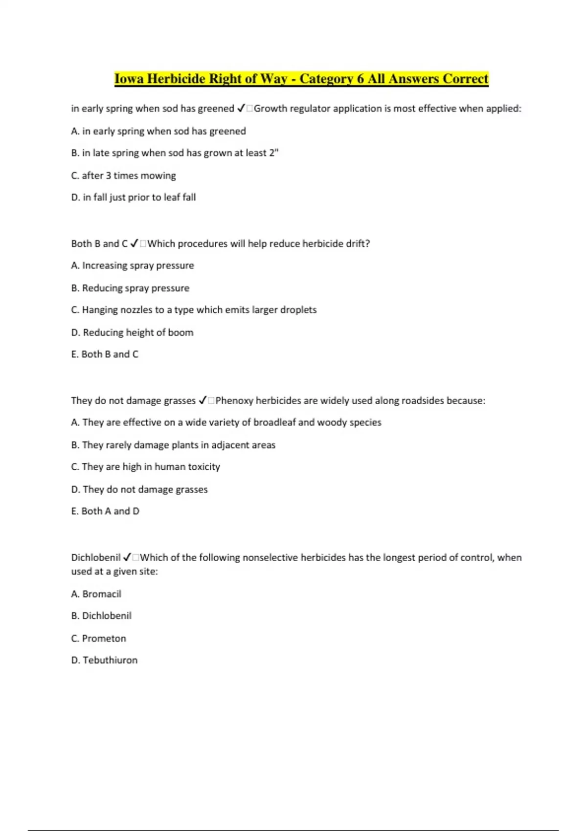 Iowa Herbicide Right of Way - Category 6 All Answers Correct
