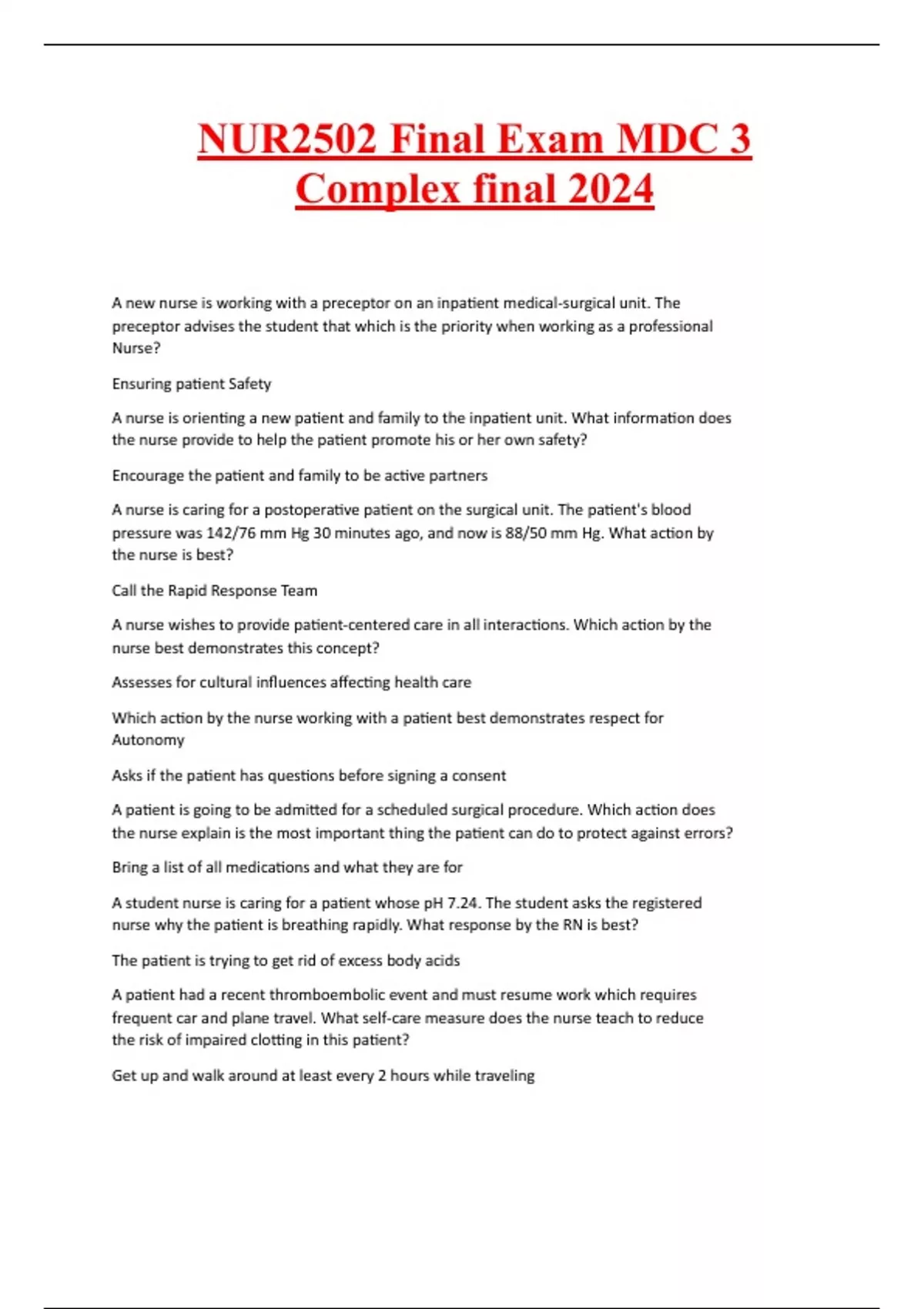 NUR2502 Final Exam MDC 3 Complex final 2024