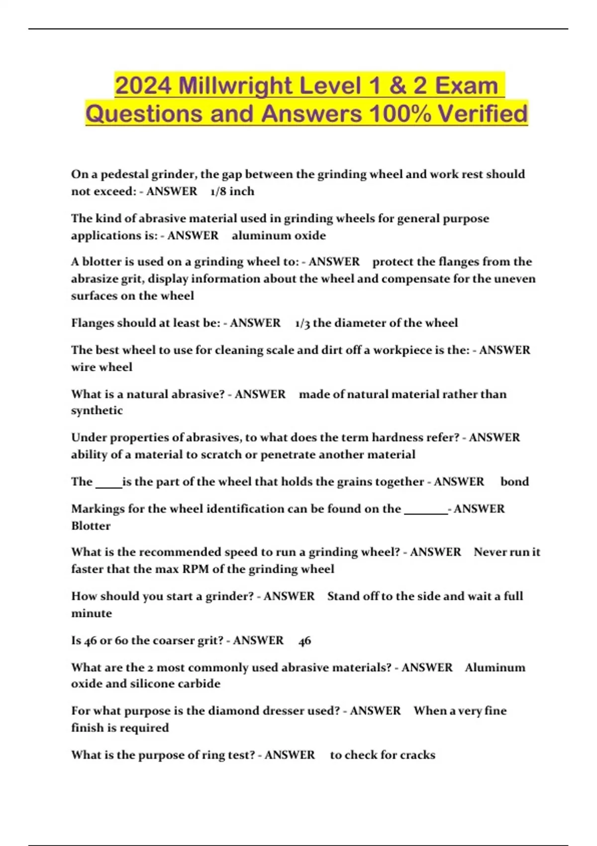 2024 Millwright Level 1 & 2 Exam Questions and Answers 100% Verified