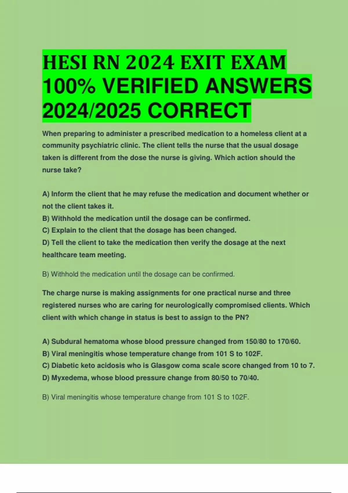 BEST REVIEW HESI RN 2024 EXIT EXAM 100% VERIFIED ANSWERS 2024/2025 CORRECT