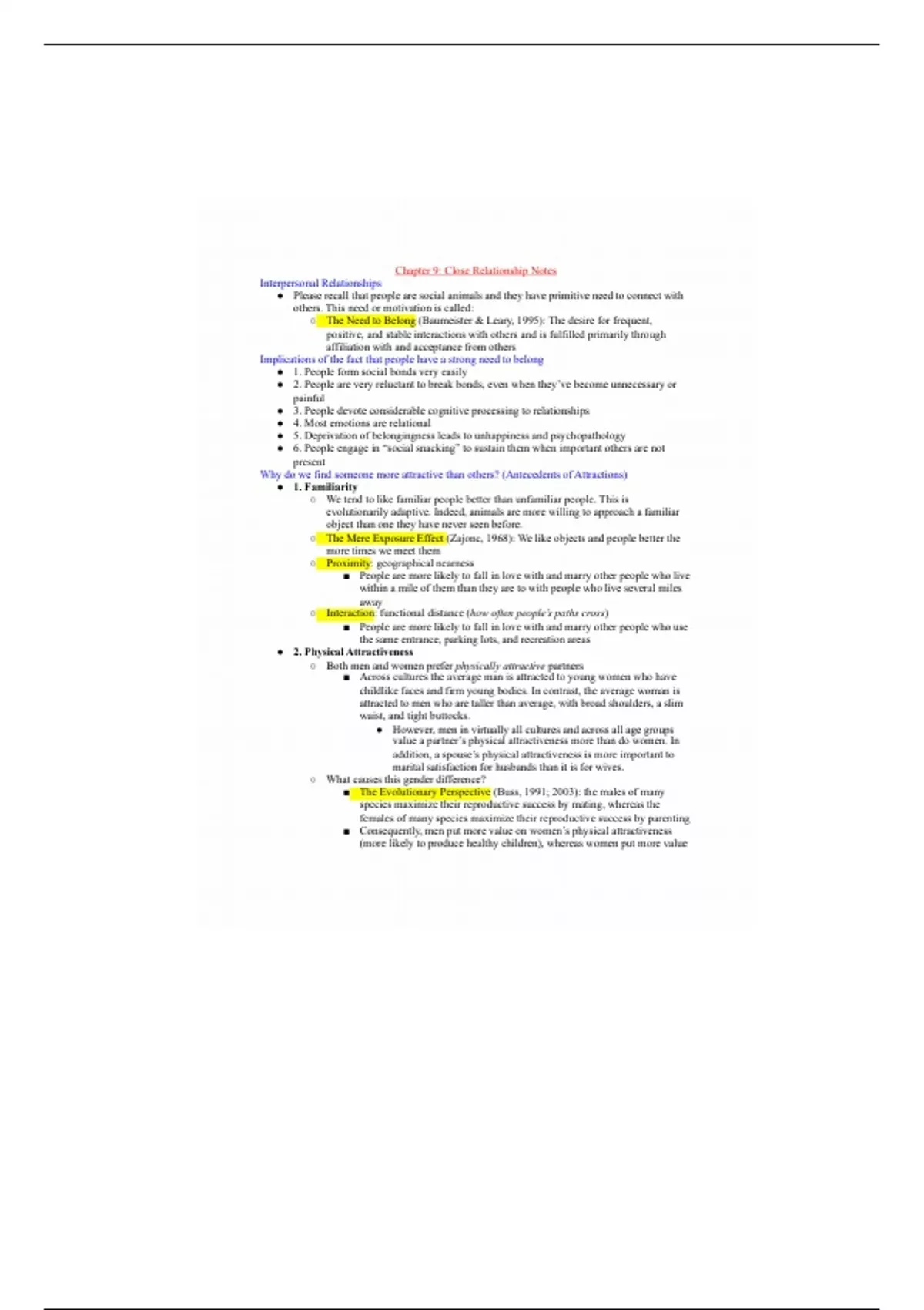 This is a comprehensive and detailed note for Psyc 206 that focuses on close relationships. U'll need it!!