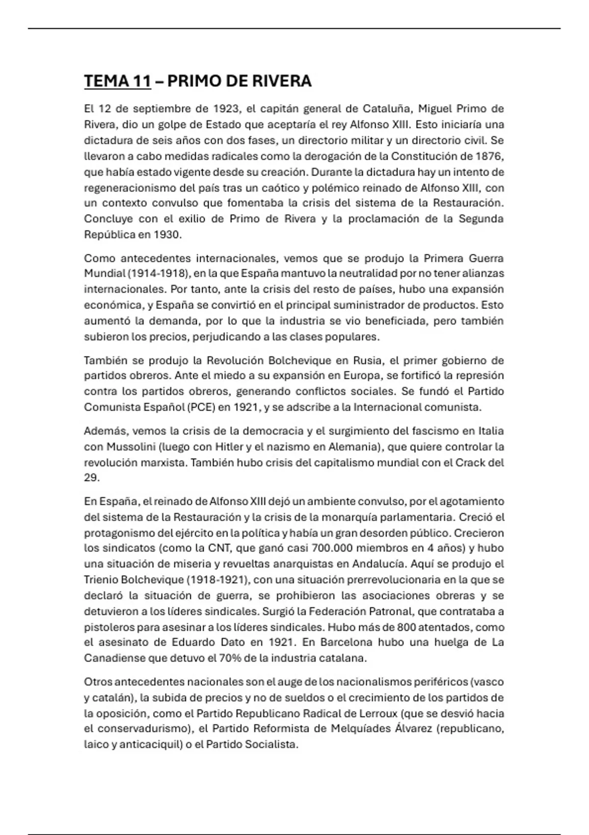 TEMA 11 – PRIMO DE RIVERA