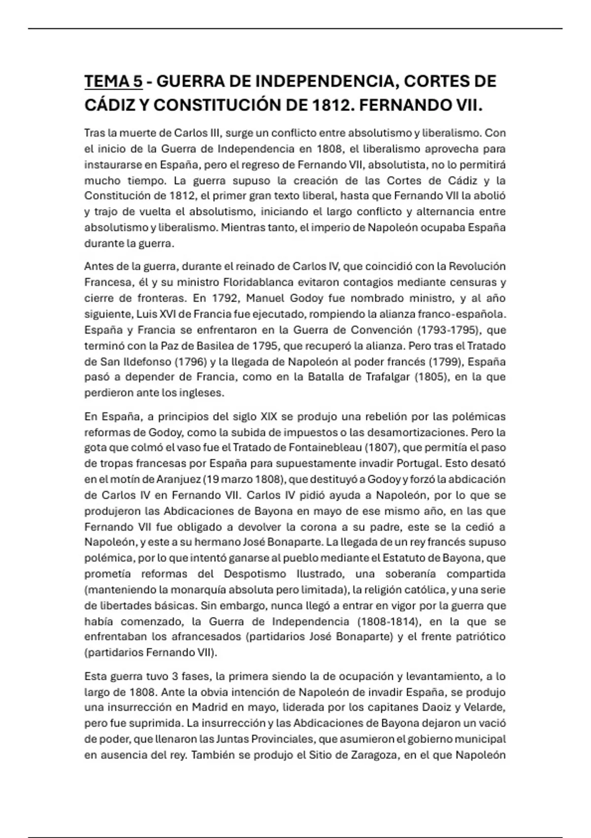 TEMA 5 - GUERRA DE INDEPENDENCIA, CORTES DE