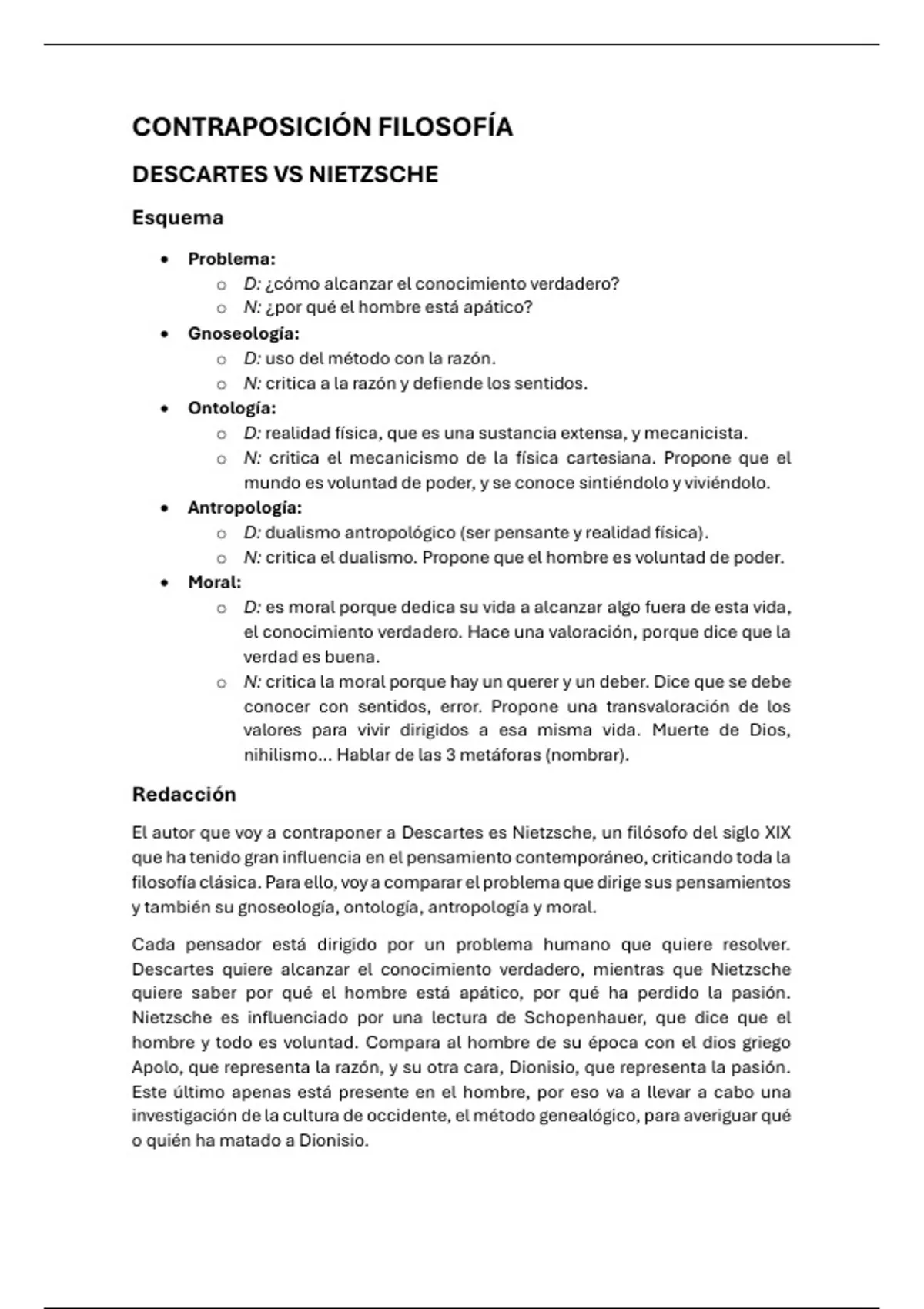 o N: critica el dualismo. Propone que el hombre es voluntad de poder.